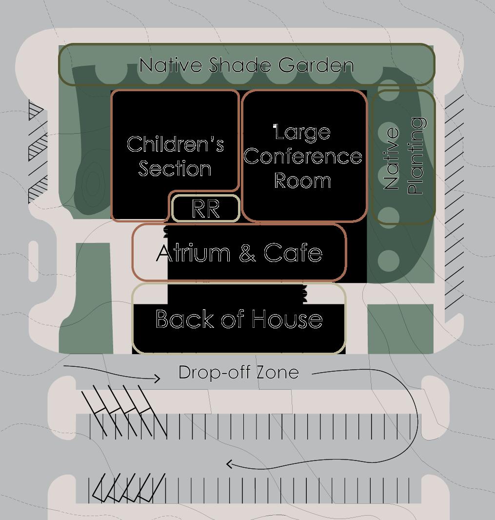 My favorite project during my second year of school was the development of a new public library in old town Olathe. The prompt was to take an under utilized lot in down town to redevelop into a public library.