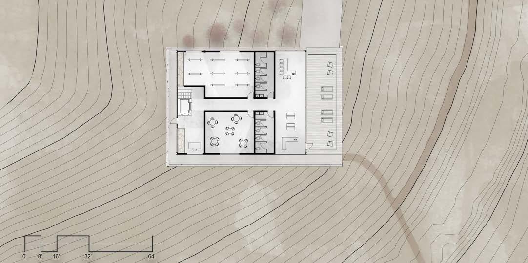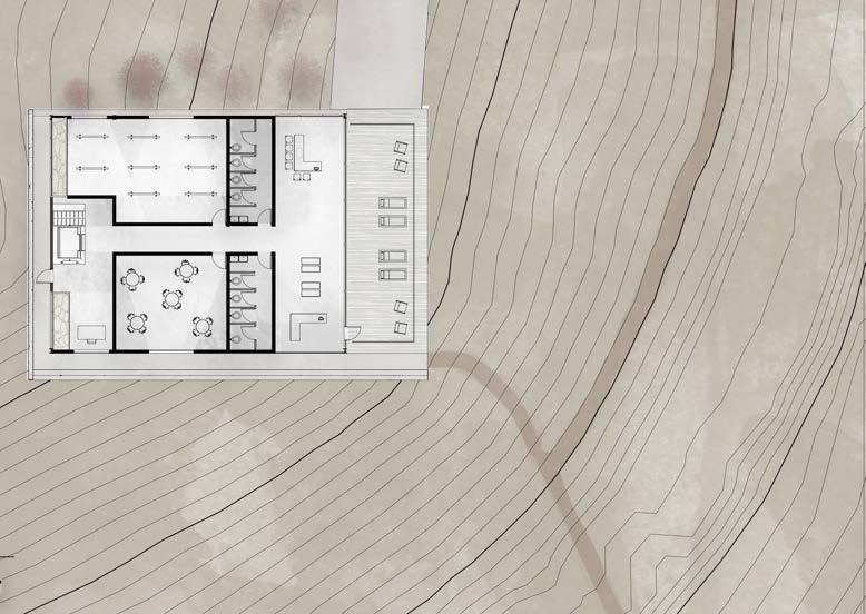 The goal of The Terrain Culture House is to cultivate a new experience for the local youth by bringing hills to the flat city of Copenhagen. The design approach is to incorporate whimsical, tiered shapes, inspired by contour lines, into the building footprint, creating points of interest that highlight key parts of the site. The culture house, shown in the section below, will be broken into a series of buildings for the purpose of offering interesting linkage points from the site to the neighborhood as well as creating “alleylike” spaces for the youth to express their creativity through street art.