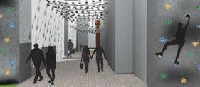 This formerly undervalued, predominantly industrial zone offers many opportunities to be enlivened. Treating this site as a brownfield development, the buildings previously seen as intimidating and out of scale will be redesigned keeping human scale in mind. With the multiple climbing gyms as well as nearby breweries, design features such as planter barrels and climbable facades will be incorporated throughout the revItalization. In addition, this site will include a pedestrian promenade in the alley that will capitalize on the restaurants that will replace the spaces previously used by warehouses.