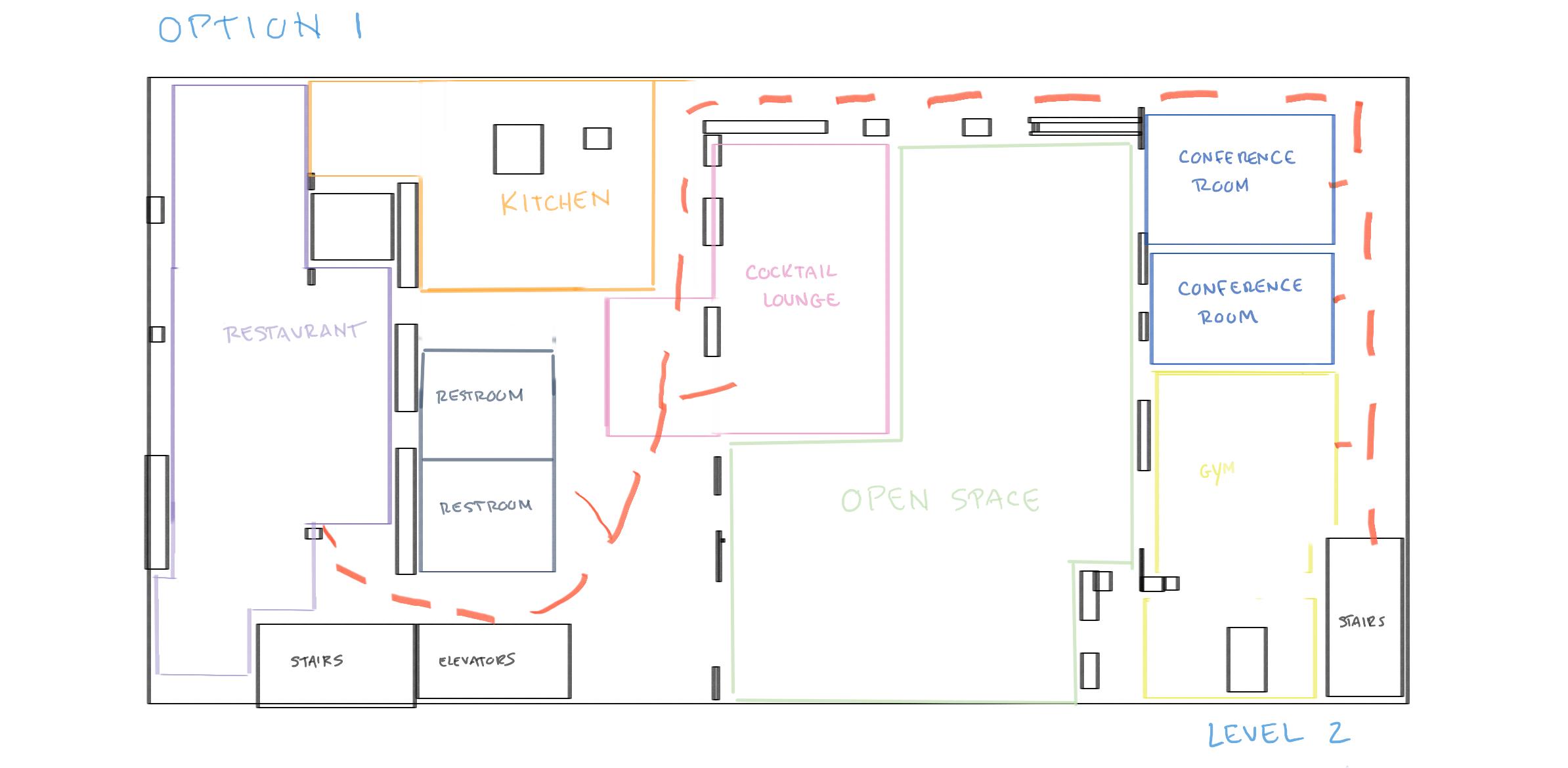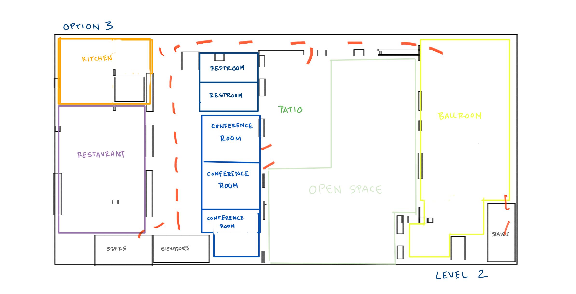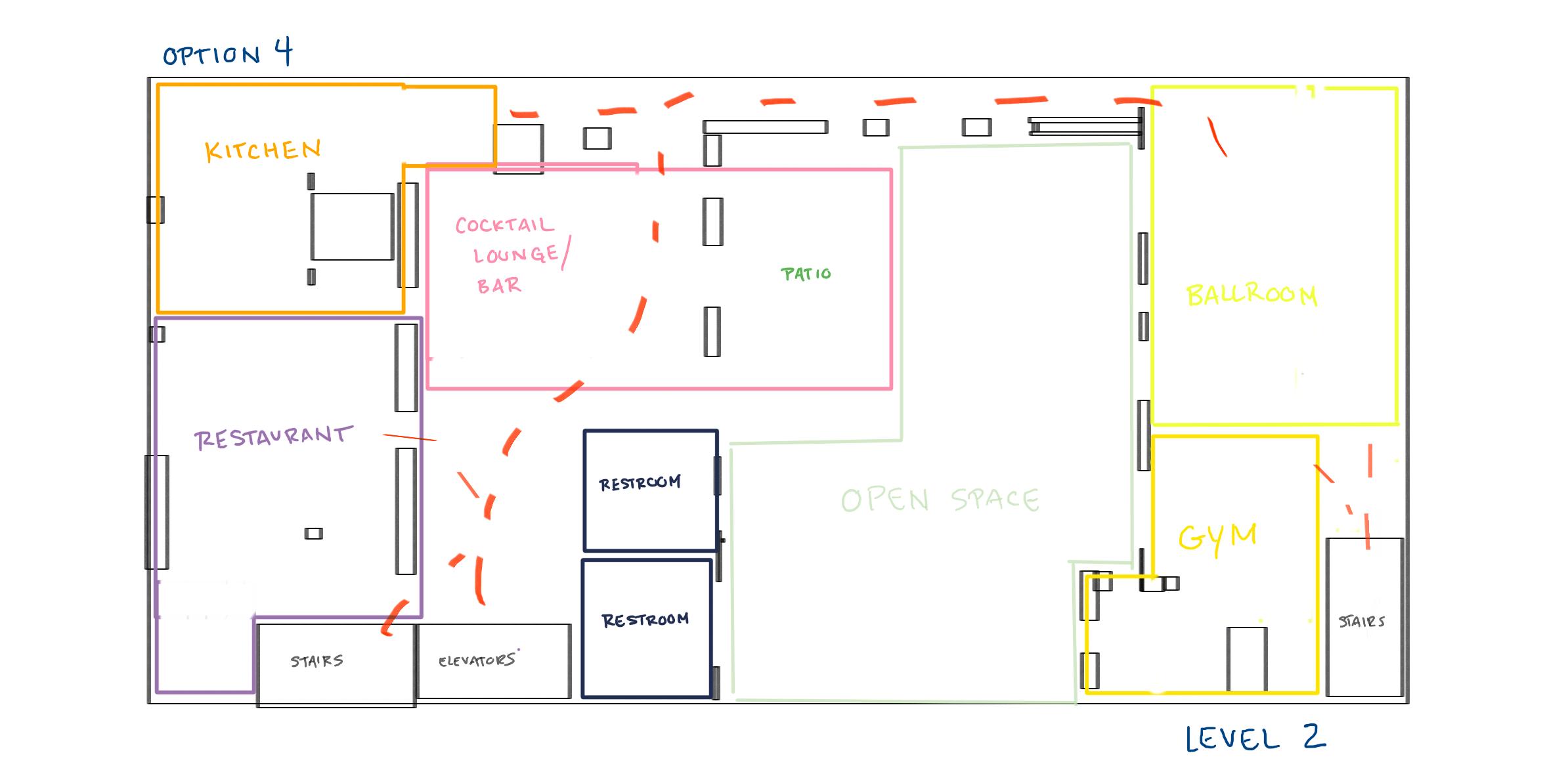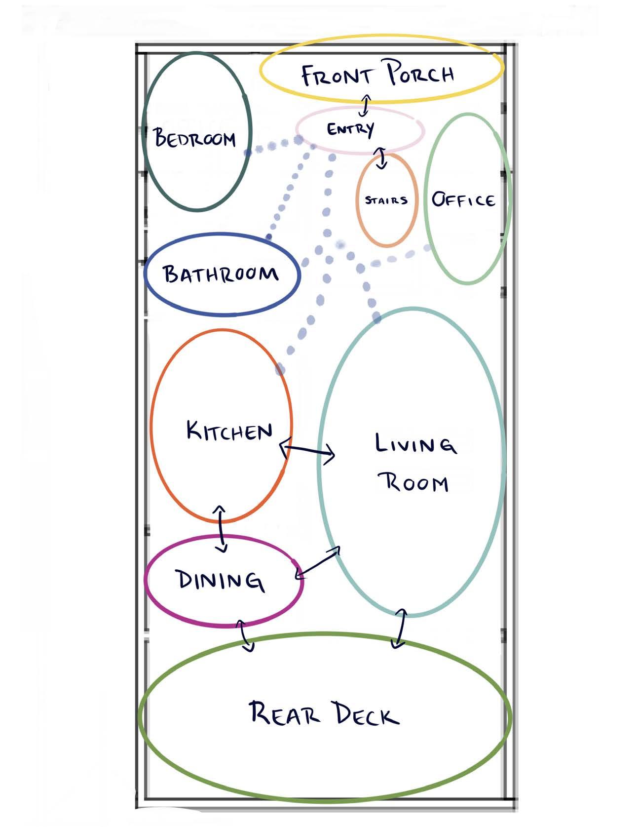 ^ Ideation sketch of kitchen remodel-- open walls to add bar seating, move stove and refrigerator.