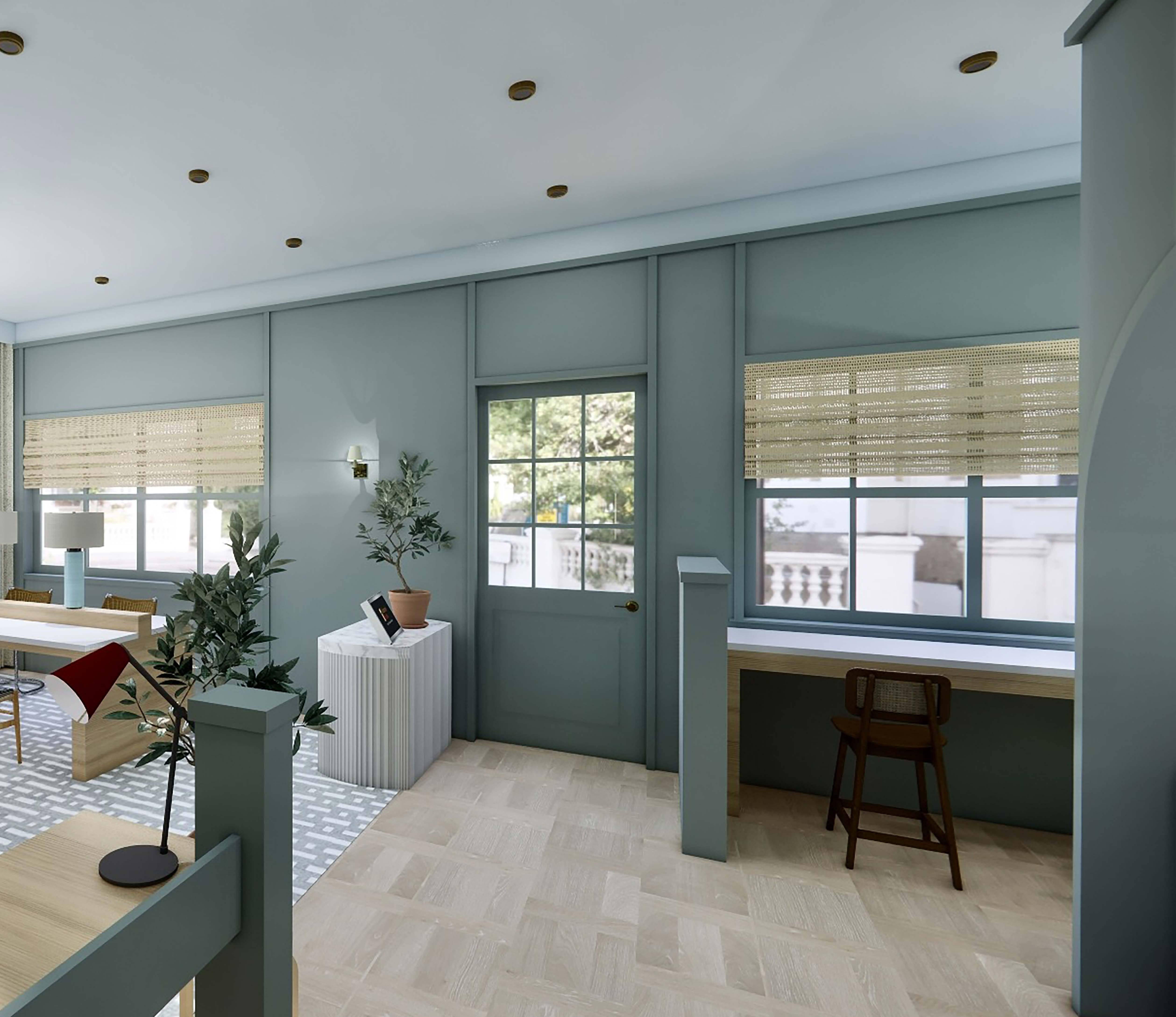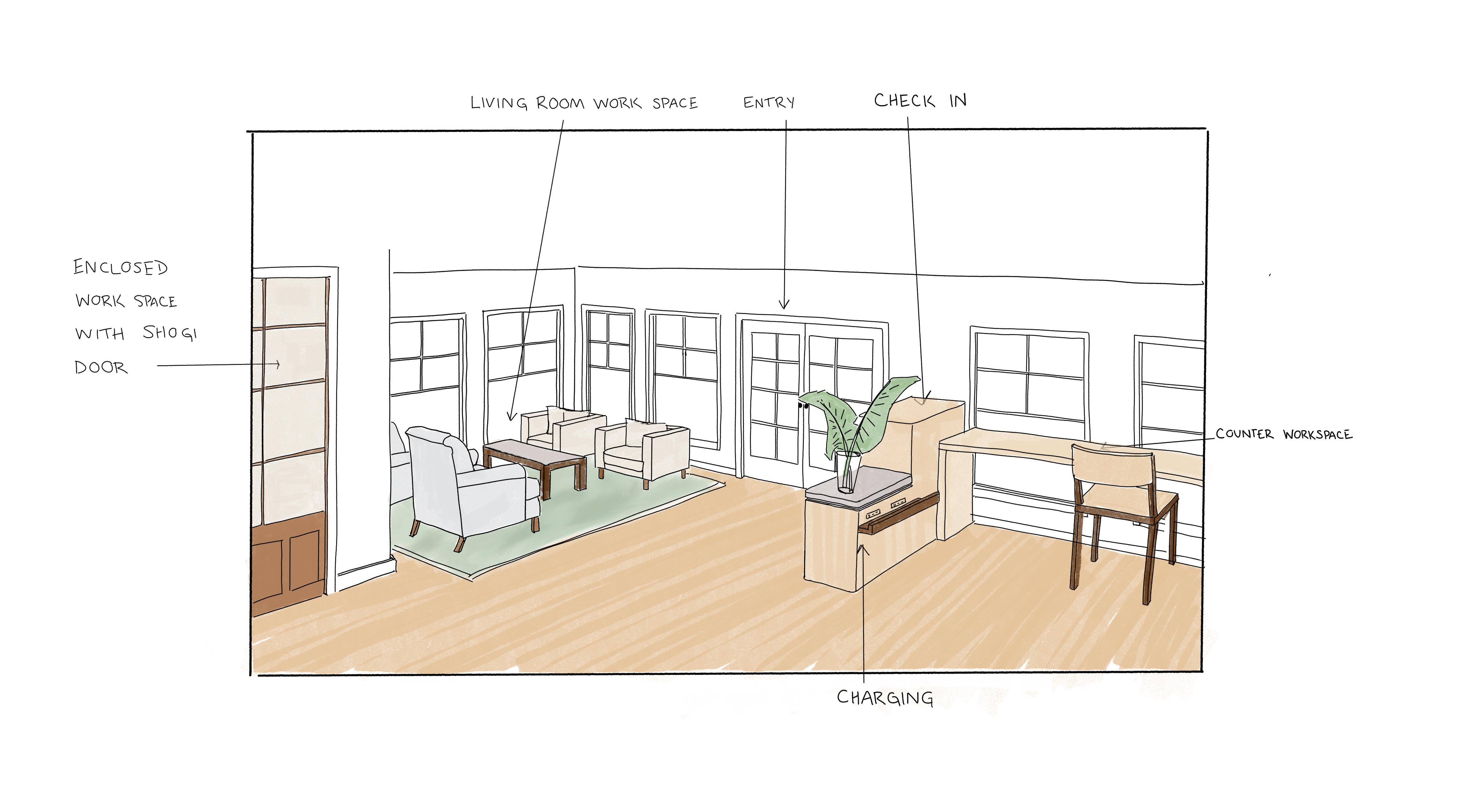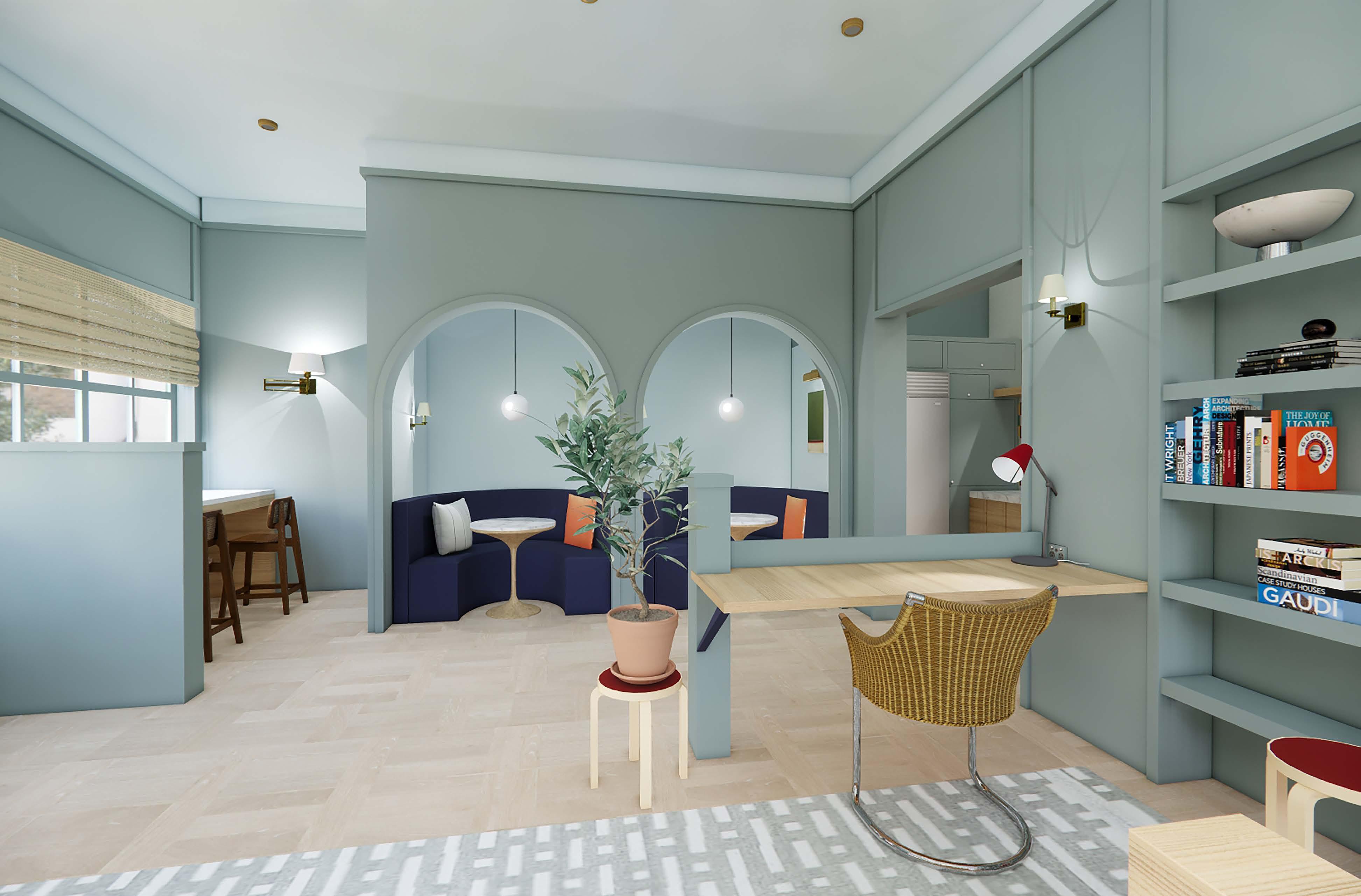 Interiors are demonstrated through three building types: 1) a single family home, 2) a cafe and 3) a cowork space.