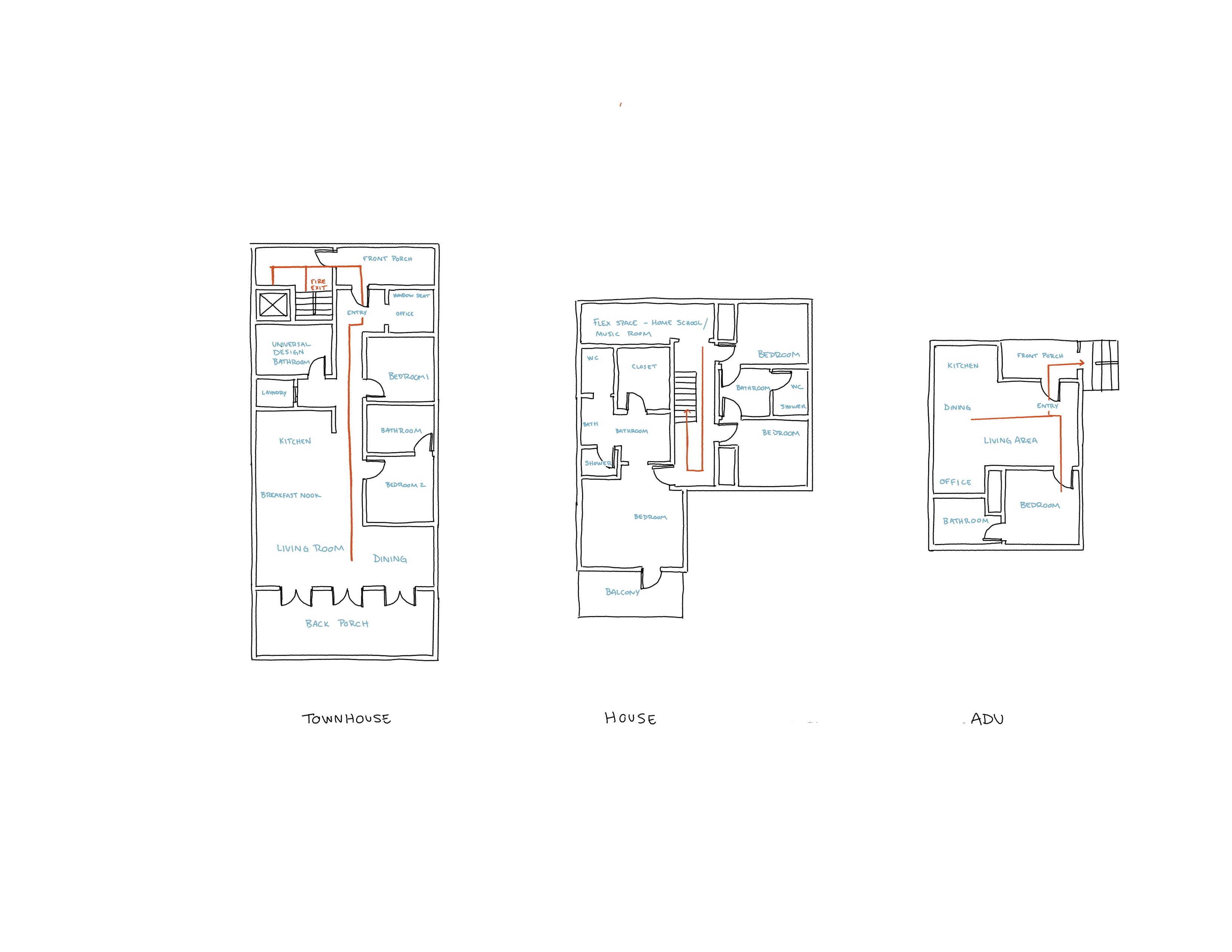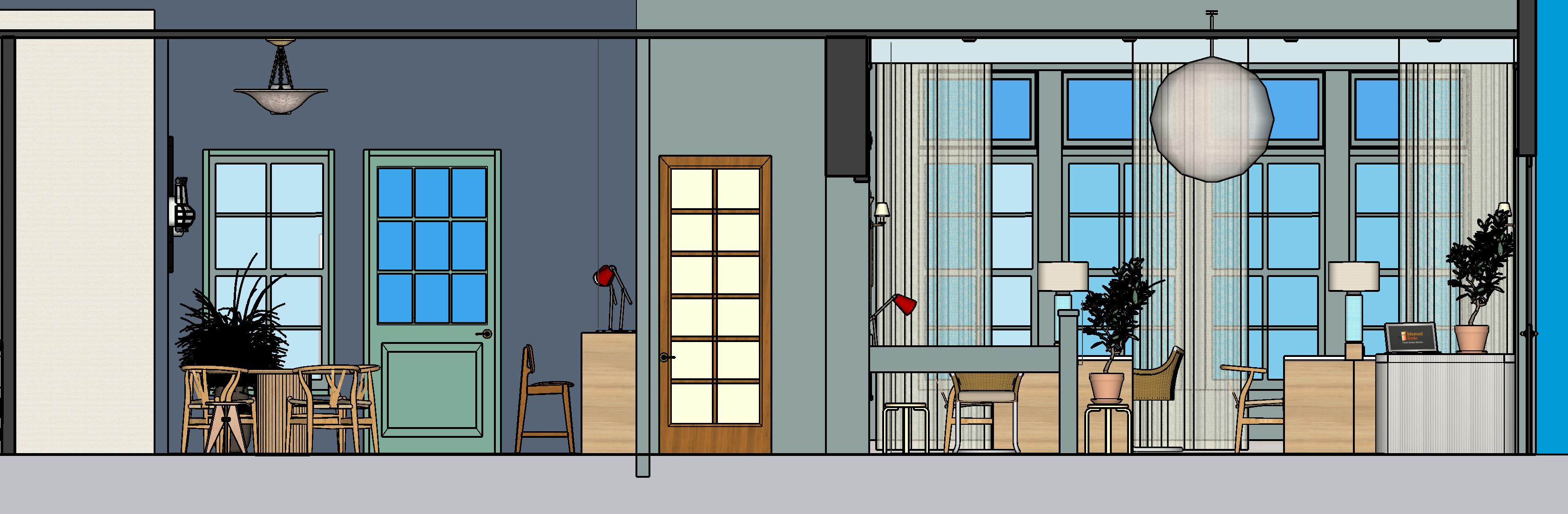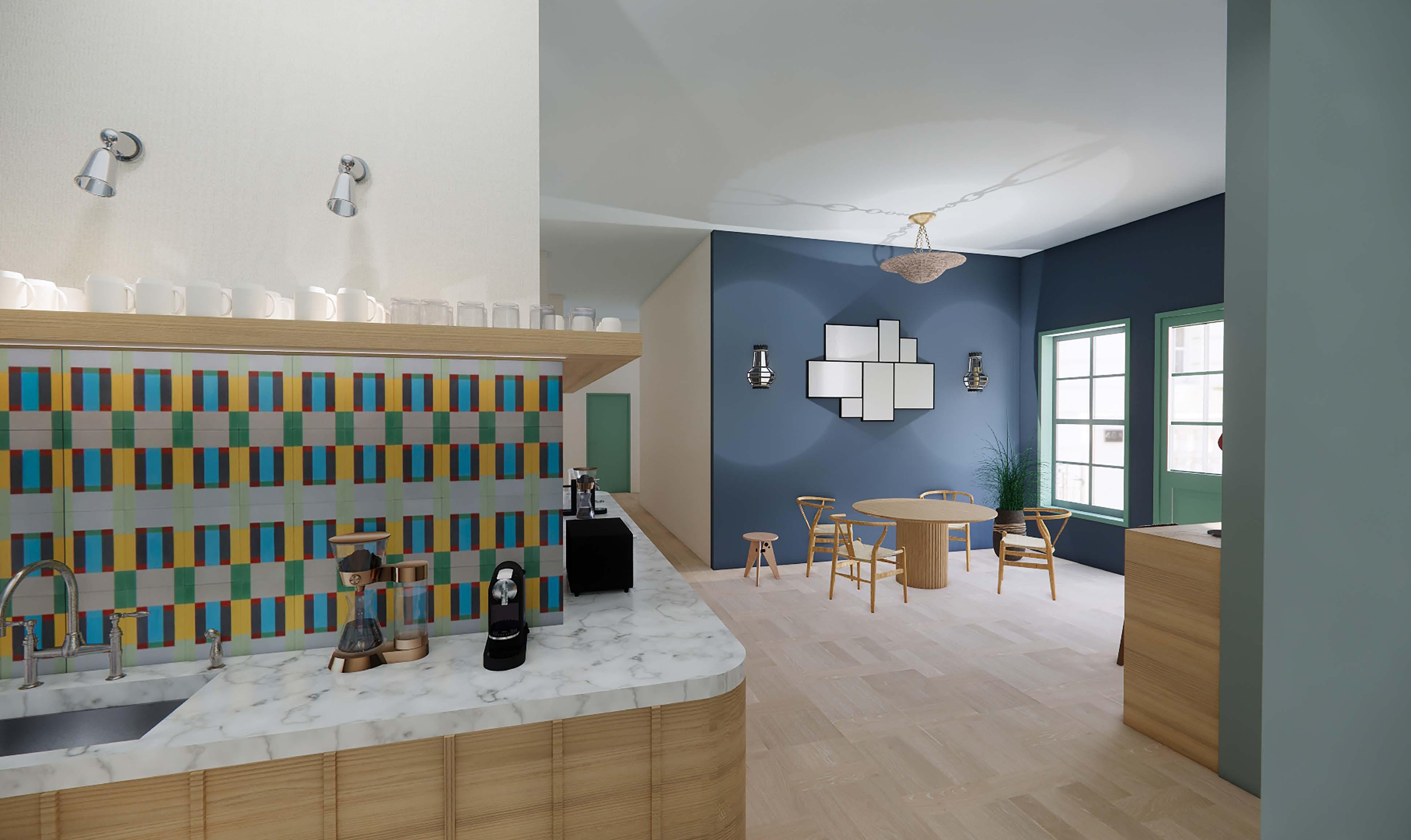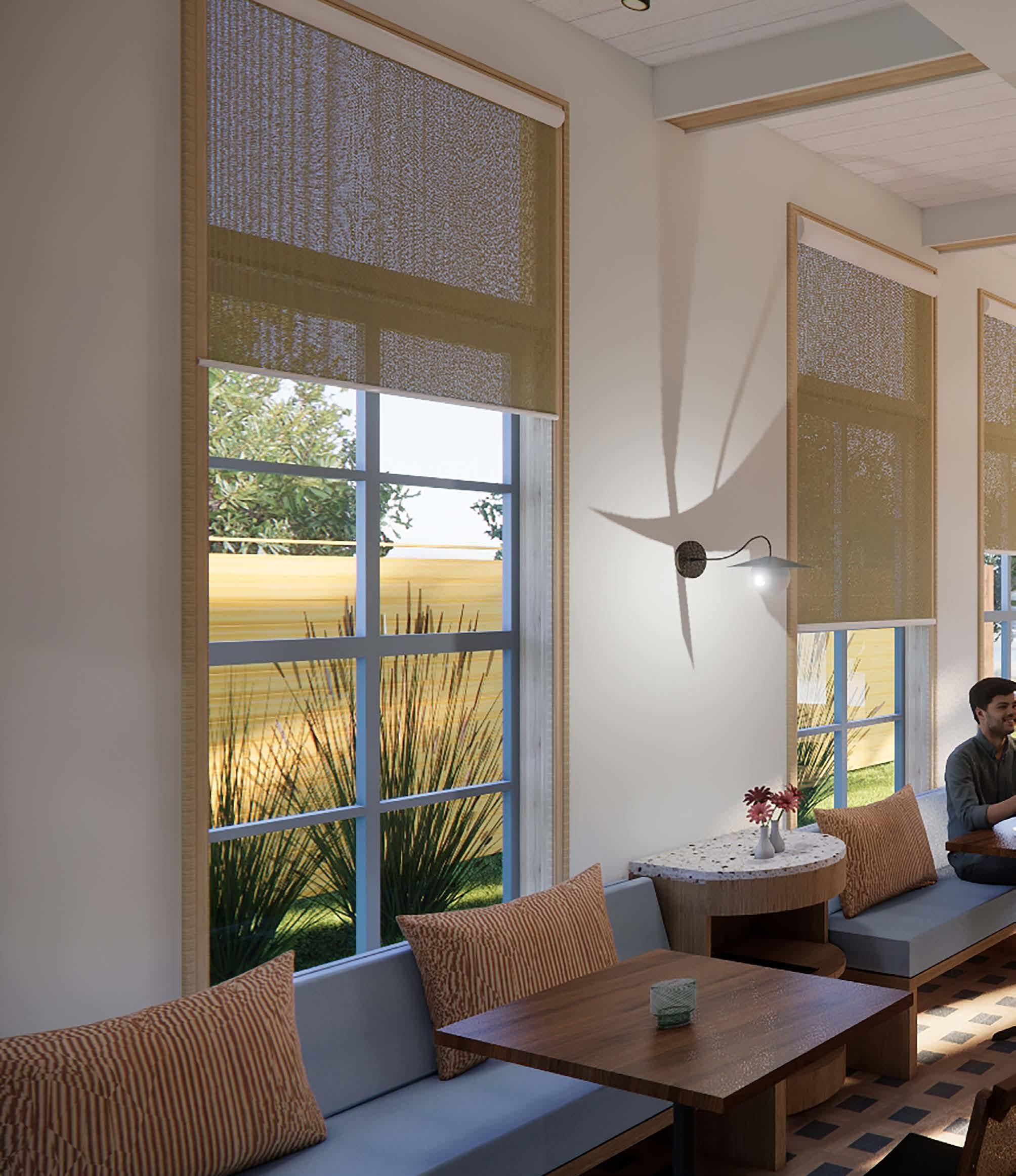 Interiors are demonstrated through three building types: 1) a single family home, 2) a cafe and 3) a cowork space.