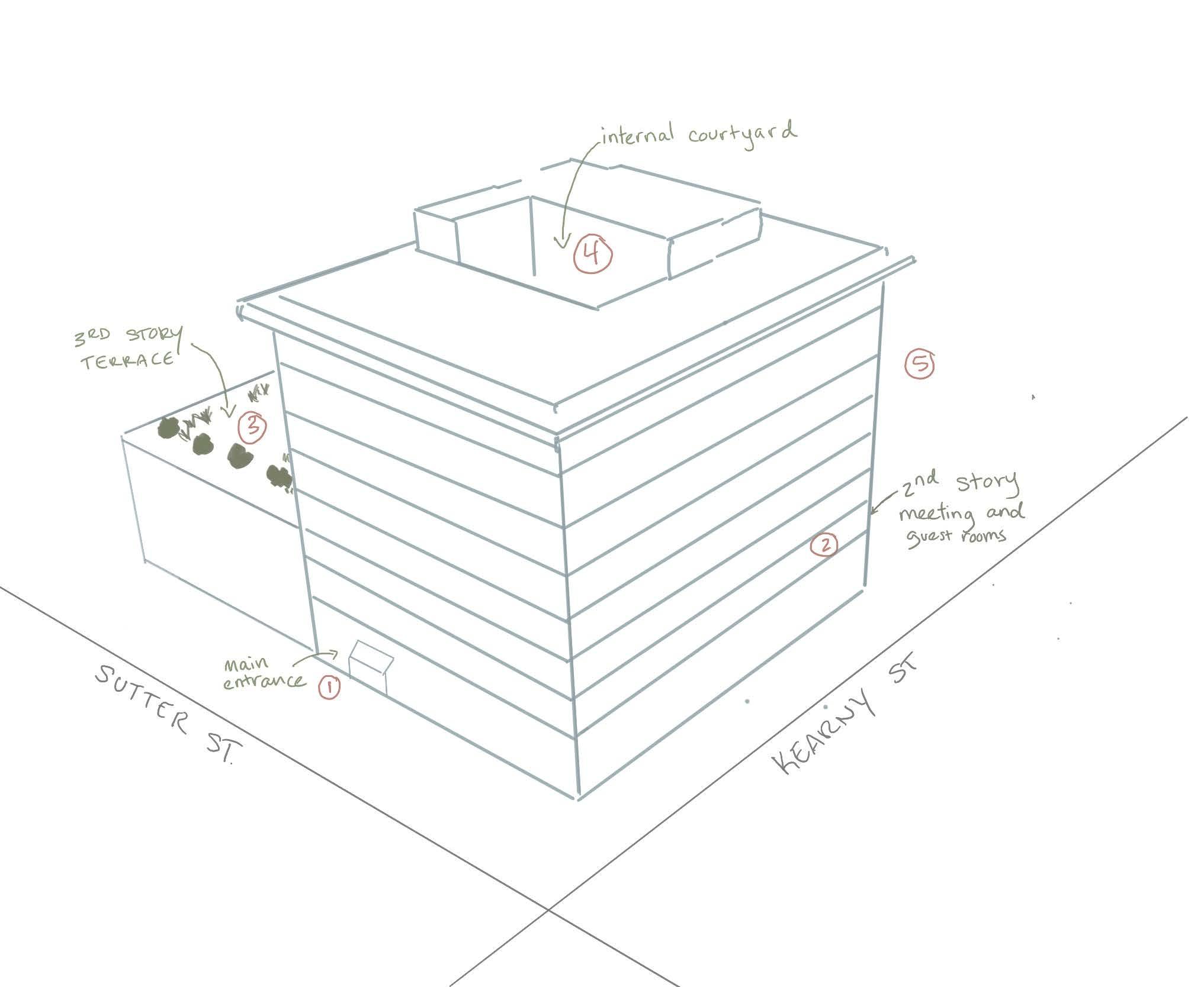 The concept is nautical history of San Francisco. The two SF icons that inspire the concept are the historic schooner, C.A.. Thayer, located at the SF Maritime park and the beautiful Presidio National Park.
