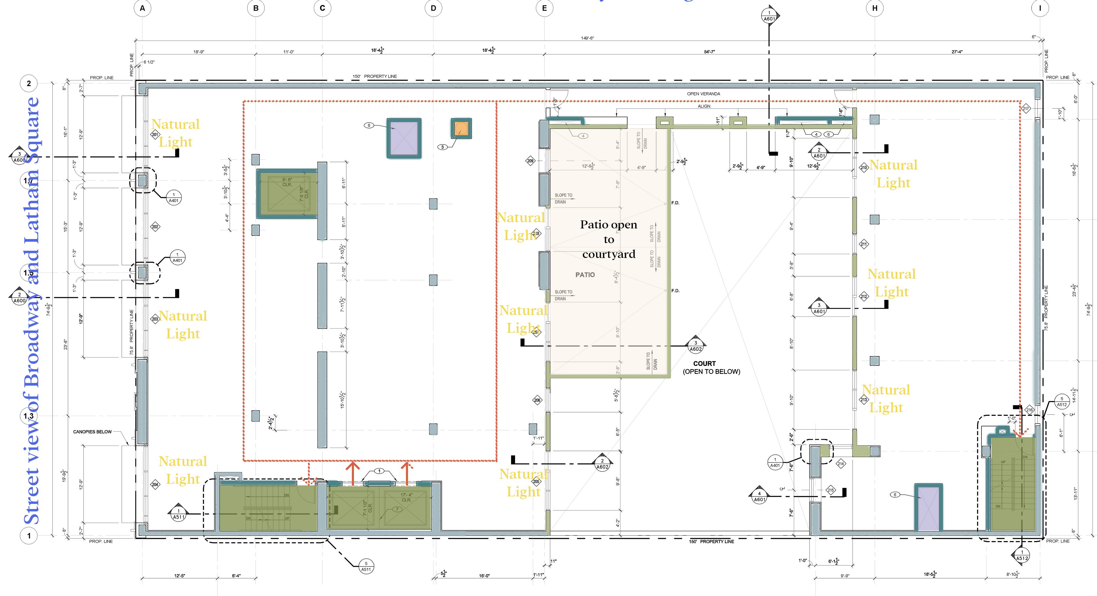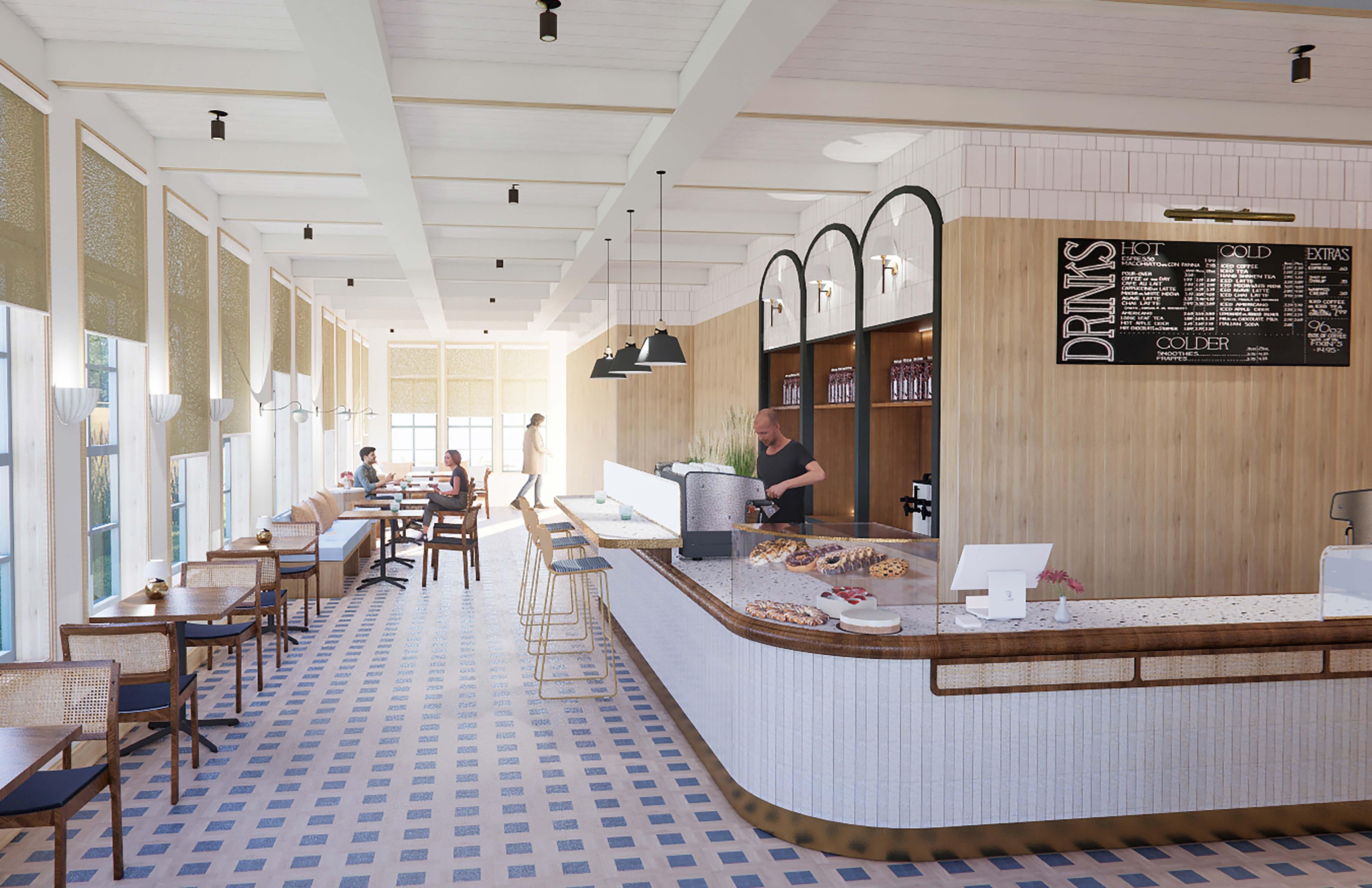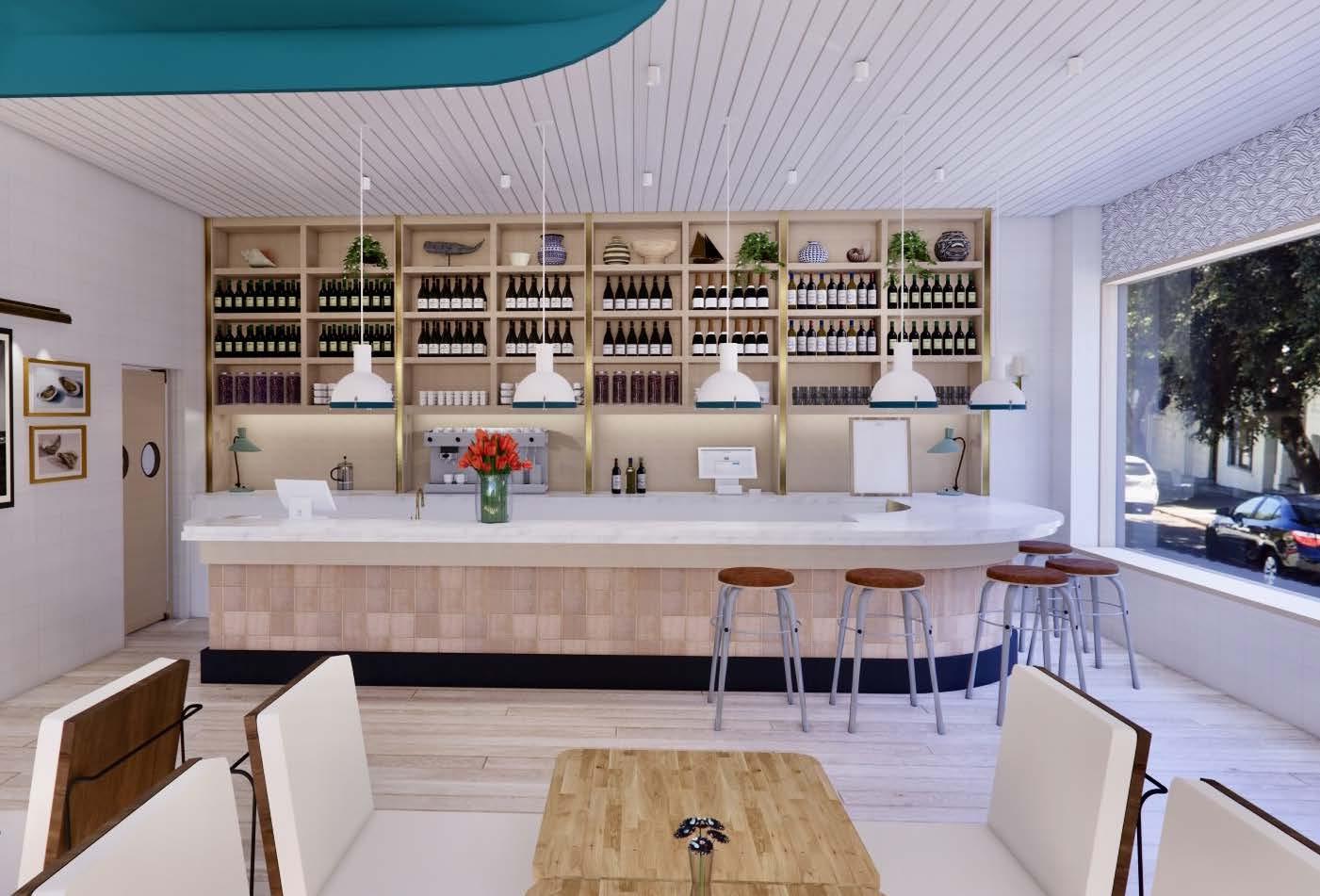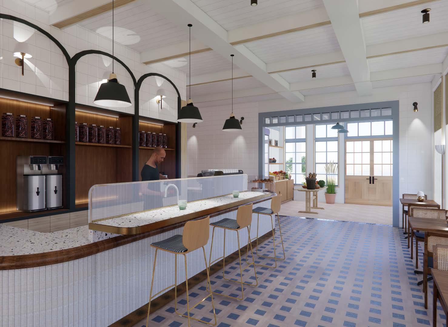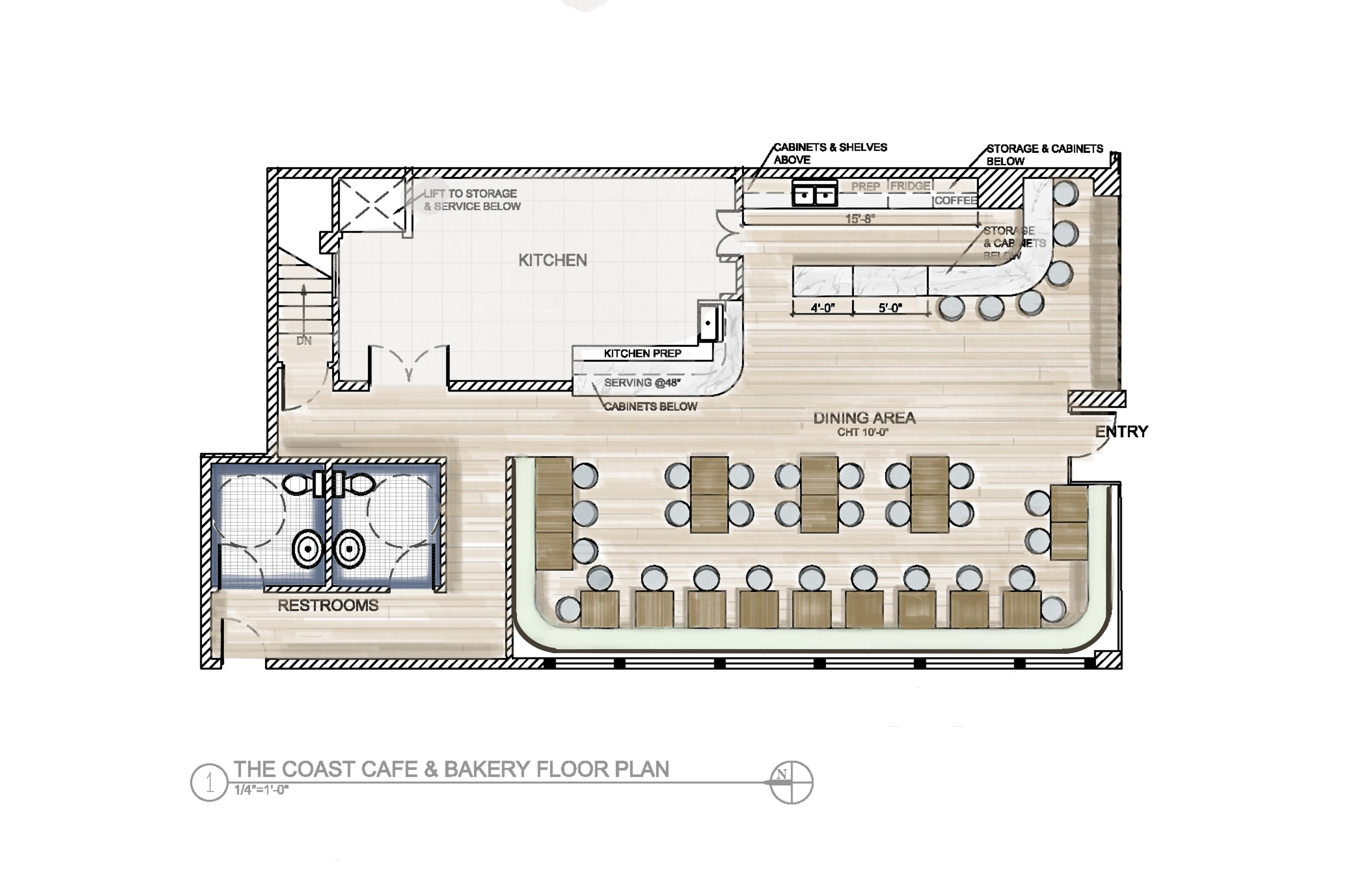 Design a cafe within an existing building in San Francisco with a focus on materials ASTM standards building codes.