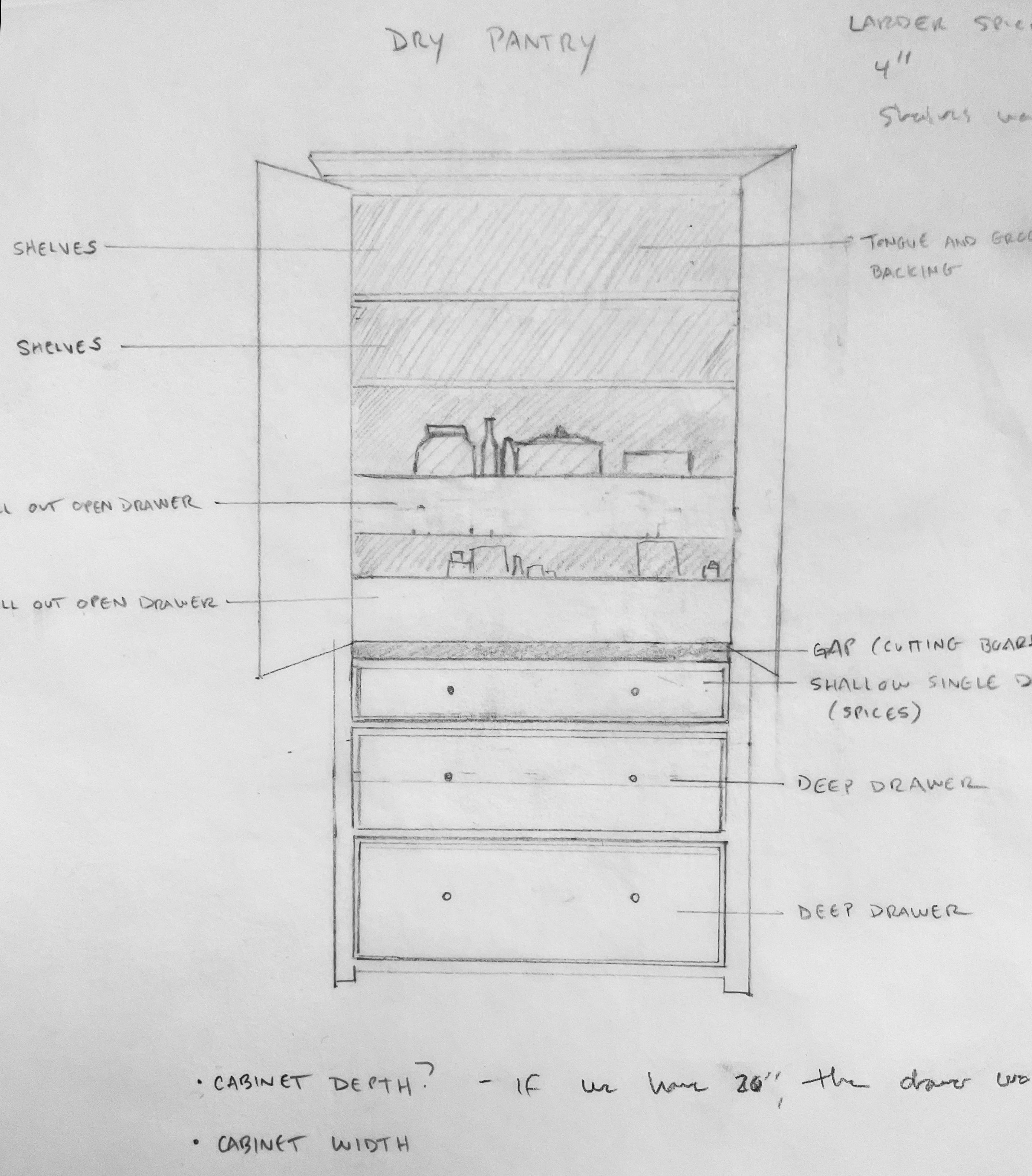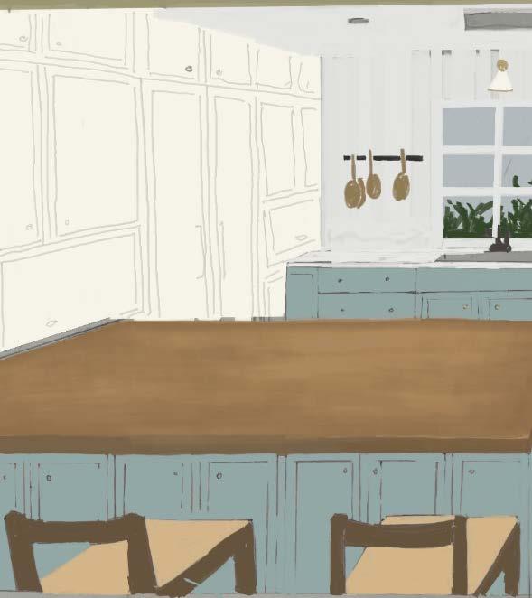 • Counter top of back cabinet near entrance to dining area will be wood to match rustic dry pantry.