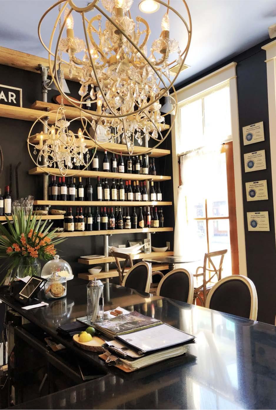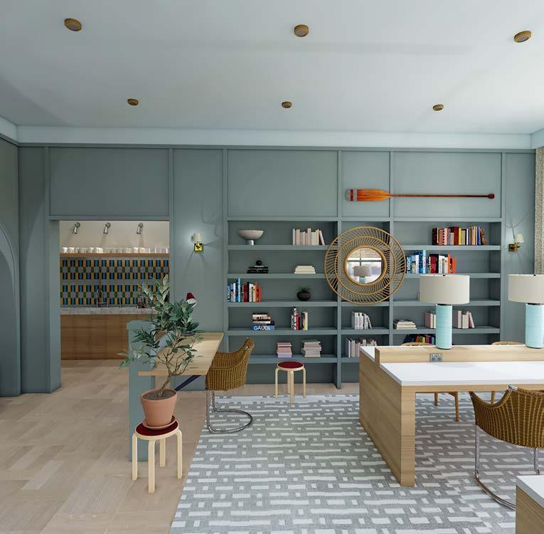 • Reclaimed materials and vintage furnishings help realize sustainability goals.