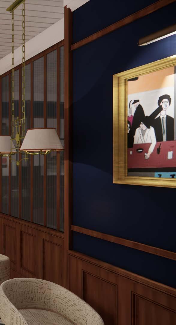 The design concept draws inspiration from the rustic country life depicted in Zorn’s paintings but is also infused with elegance and finery as a nod to his opulent life in Paris where he rose to fame as a society portrait painter.