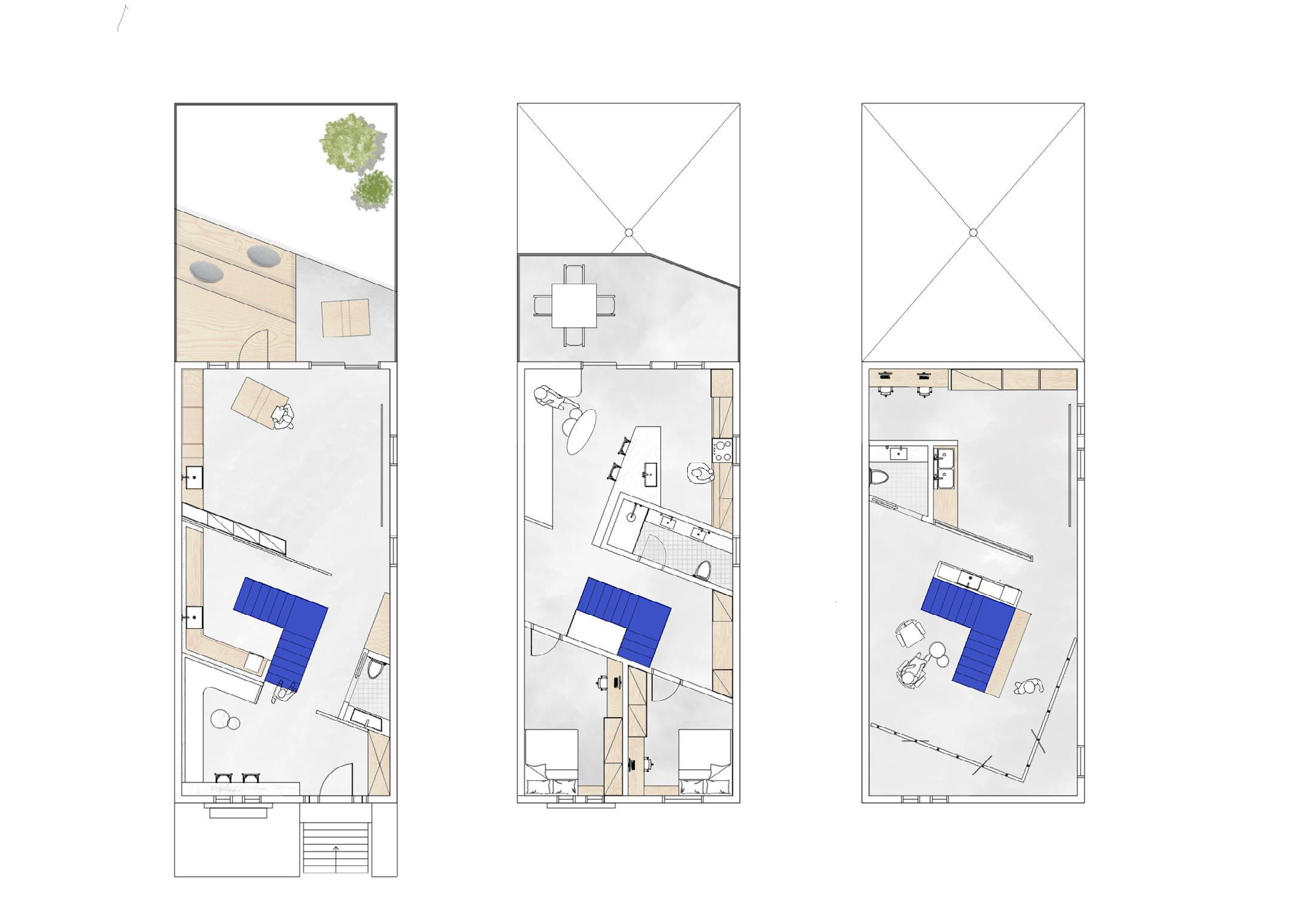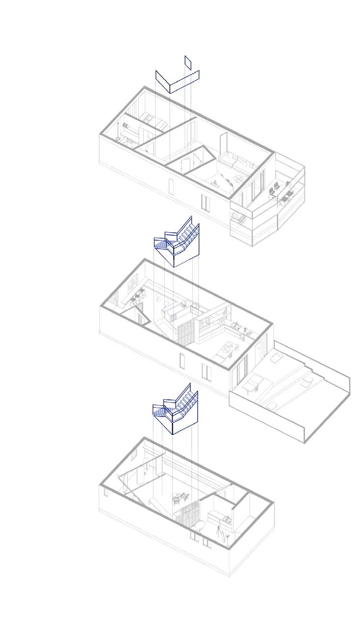 This residence allows its artists to be creative and open-minded while maintaining an organized and functional lifestyle. It is a place of amalgamation; a blend of heterogeneous elements that function through the guided overlay of the staircase framework.