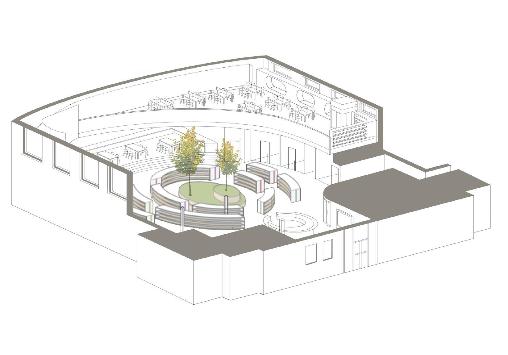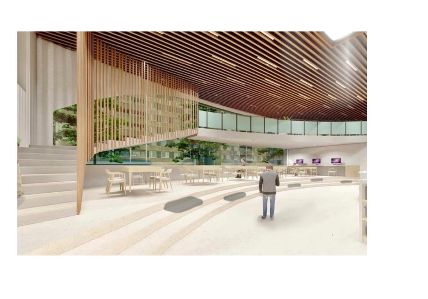 Symbiosis is a project that can be summarized as the harmony between different parts of a building and its environment, as well as the harmony among its occupants. This concept becomes even more meaningful in the context of a library for students. Thus, this project is the redevelopment of the library at Dalbé-Viau High School in Montreal. It creates an atmosphere that evokes nature and fosters success. The architecture is in symbiosis with its intended function, incorporating various spaces and seating options to accommodate different needs.