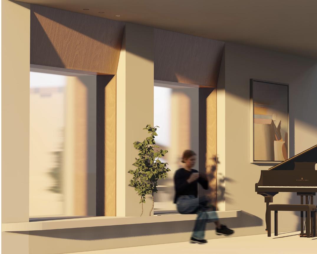 WINDOW SEATING THAT EMPHASISES THE FIELD OF VISION WHILE ADDING UTILITY TO THE SPACE