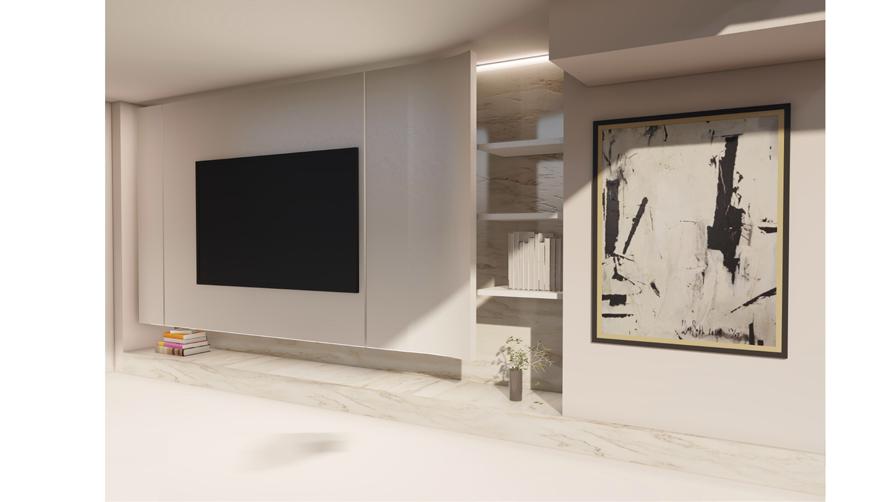 Almaya is a residential project that introduces the integration of a custom-made entrance furniture to frame the space. It is a functional piece of furniture that can provide convenient storage while following an easy flow of circulation. It offers a simple yet effective solution to frame the entryway space as well as the living room on both ends. Its linear movement creates a visually appealing focal point that captures the attention of visitors as soon as they enter the house.