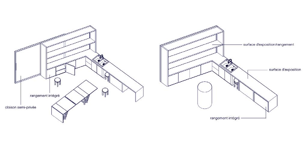 Integrated storage Semi-private partition Display and storage surface Display surface Integrated storage Semi-private partition Integrated storage Display and storage surface Integrated storage