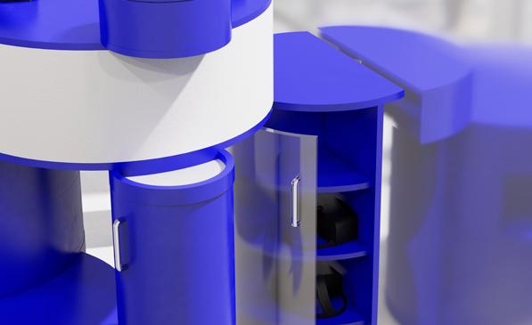 Kinetic refers to the set of phenomena related to movement. In the development of this display, the goal was to create rotating modules that illustrate the idea of movement, incorporating multiple components. It is a multifunctional furniture designed for a company engaged in entertainment through virtual reality, Mont-VR. This interactive showcase allows users to engage with the space from the outside and gradually discover the subject, marking the beginning of their virtual reality experience.