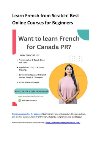 Join the best online French learning program in India! Our platform offers structured lessons, expert instructors, and live speaking practice to help you achieve fluency. Whether you're learning for travel, career, or exams, we tailor our courses to your goals. Start your French journey with confidence and flexibility.