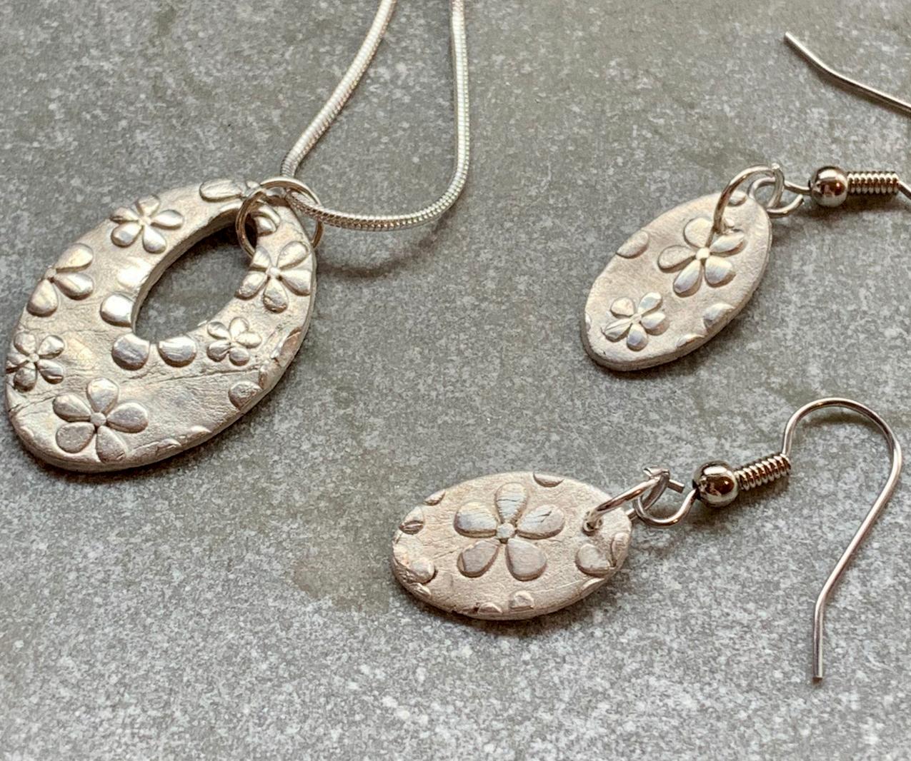 Spendadayimmersedintheexcitingworldofpreciousmetalclay.We willusesilverclaytomakeeitherdroporstudearringsandapendant necklace.Youwillcut,shapeandtexturetheclaywhich,oncedried willbefiredtosterlingsilver,andreadytotakehomewithyou.