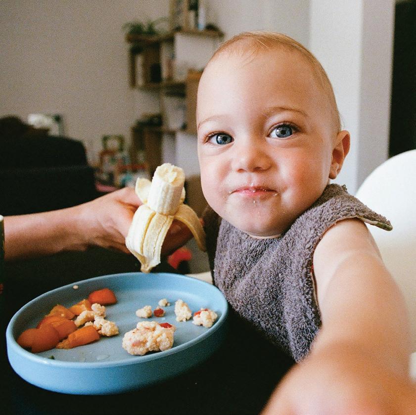 • While feeding table food, allow baby to pick up small pieces of food to eat