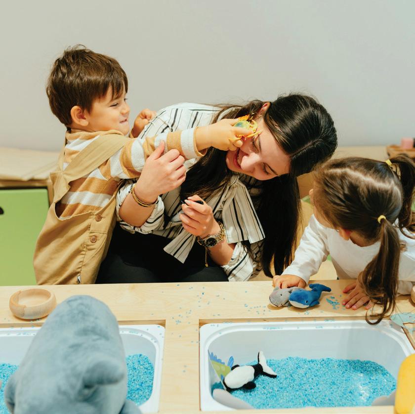 These play-based learning exhibits build approaches to learning, cognitive, and motor development domains! Babies will enjoy using their sense of touch at the water station and soft surfaces for rolling and crawling.