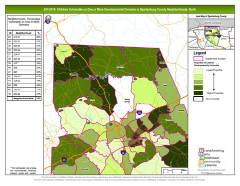EDI 2018: Children Vulnerable on One or More Developmental Domains in Spartanburg County Neighborhoods, North Neighborhoods: Percentage Vulnerable on One or More Domains ID