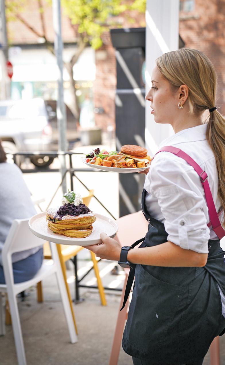 neighbourhood demographics before making the leap. After a relatively short time in the neighbourhood, the business is thriving. Midmorning on a Tuesday, there are 14 people enjoying a leisurely breakfast. During the week, there are three to four people working a shift; on weekends, six to seven, many of them former Sophie’s staff.