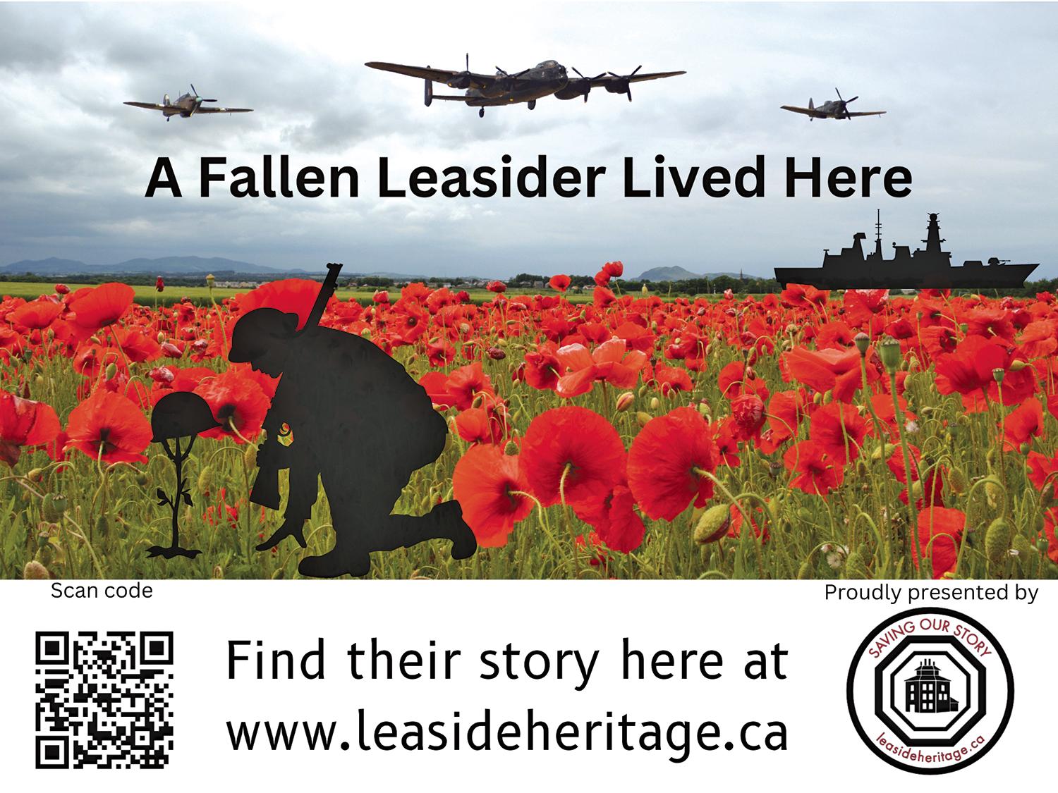 You can learn more about some of them by participating in the annual Leaside Remembrance Day Walk, to be held on Nov. 11, starting at 2 p.m. at the entrance to Trace Manes Park. Much thanks to organizers Leaside Heritage Preservation Society, whose walk stops at houses where fallen soldiers from the area lived before their service.