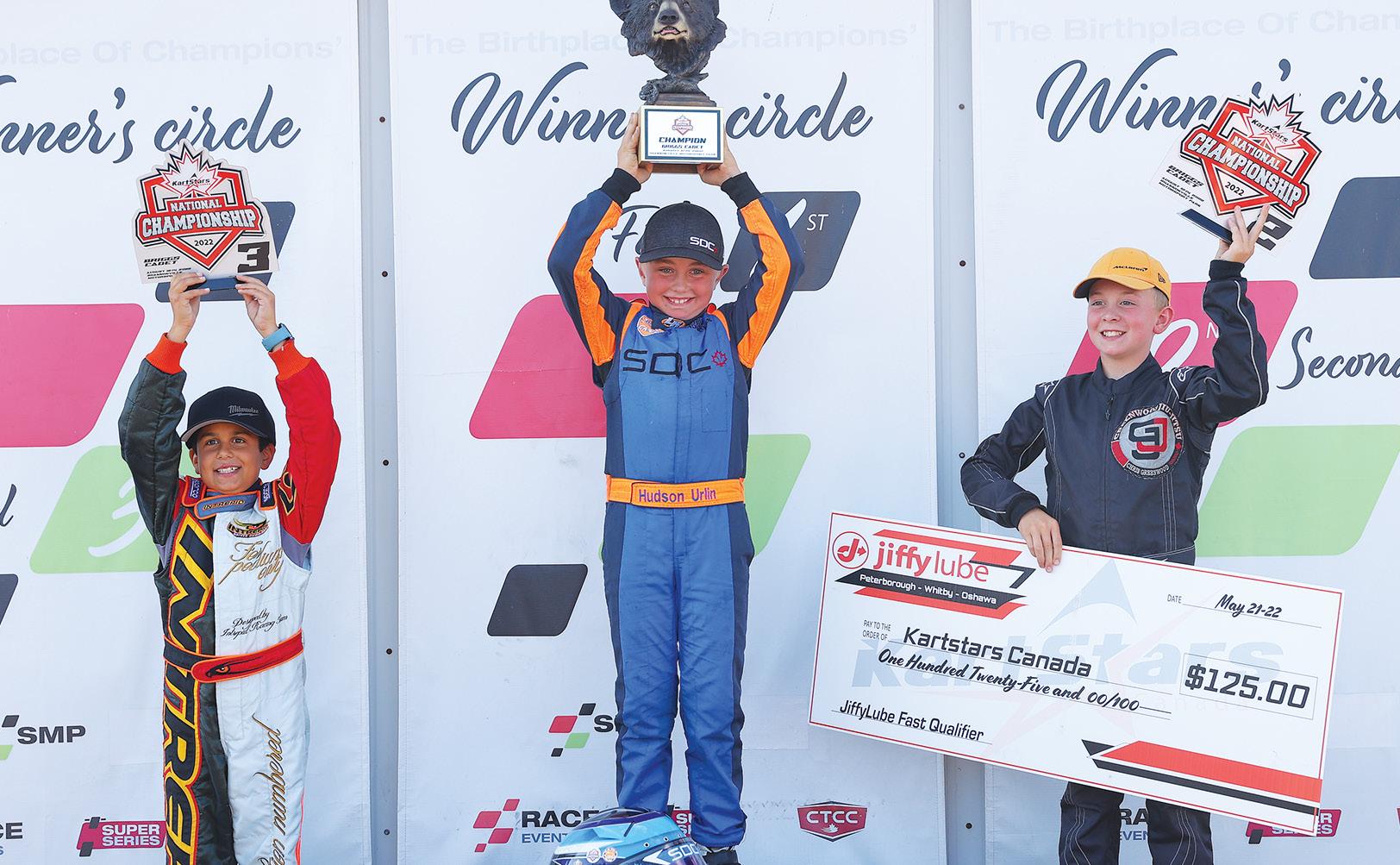 Ethan (far right) celebrating 3rd at the Kart Starts Canada race.