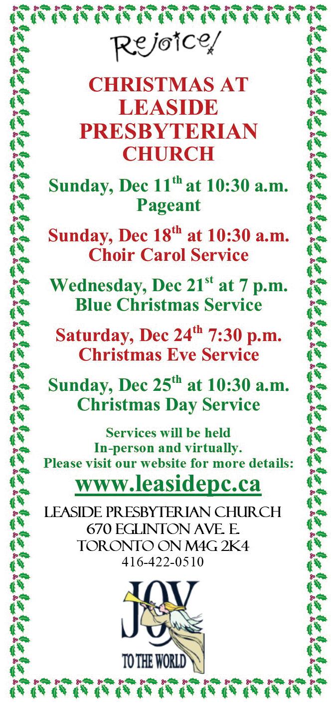 It’s hard to believe, but we’re now in our third winter holiday season under the watchful eye of the pandemic. Even twotime Stephen Leacock Medal for Humour winner, and Leaside Life columnist, Terry Fallis sounds a little less buoyant this month as he searches for the proverbial silver lining: “We can all still enjoy family and friends even if it means rooting around in both