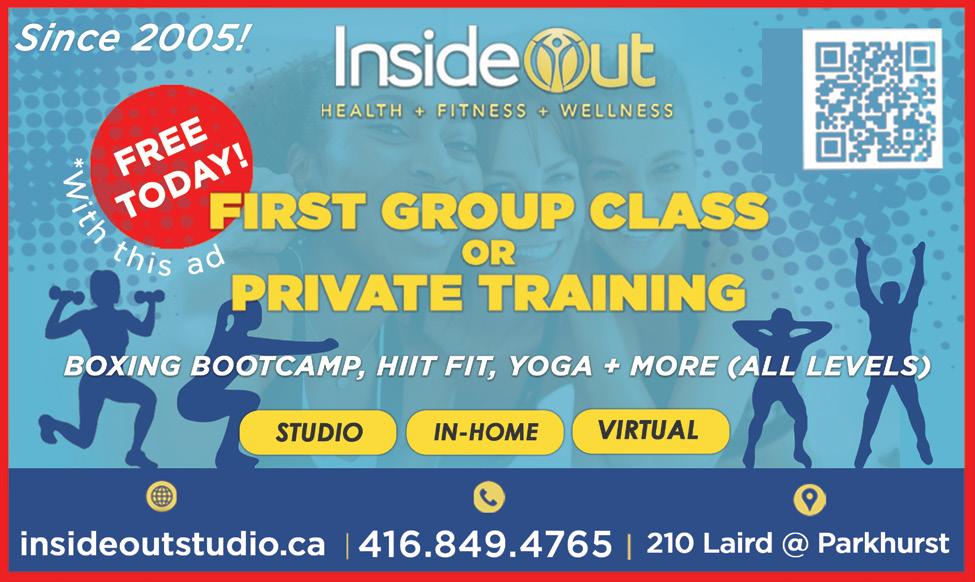 5 Leaside Life • March 2023 EACH OFFICE INDEPENDENTLY OWNED AND OPERATED THANKS LEASIDE FOR YOUR SUPPORT! Burritos. Bowls. Salads. Wraps. Soups. Smoothies. Juices and more… 45 Wicksteed Ave. (SmartCentre Plaza) 647•417•1716 Buy one chef-designed entrée, get one chef-designed entrée FREE! Limit one per guest. Free entrée must be of equal or lesser value. Proteins excluded. Valid in store only. Coupon must be surrendered at time of purchase. Cannot be combined with any other offer. Taxes extra. Valid only at the Freshii Leaside location. Expiry March 31, 2023. LEA SIDE Community PHARMACY M-T 9-6, FRI 9-5, SAT 9-12 FREE Delivery all over GTA ALL Drug Plans Accepted 795 Eglinton Ave. East Toronto, ON M4G 4E4 Tel: 416-422-0186 Fax: 416-422-0185 The pharmacist now prescribes for minor ailments. Call or come in for more details. No appointment needed! 416-486-5588 Lynda.Gorges@gmail.com www.lyndagorges.com Lynda Gorges Broker Passionate about helping myClients