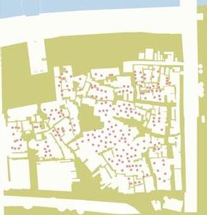 Pavement and seats made of repurposed brick from demolished walls. The entrances to the project.