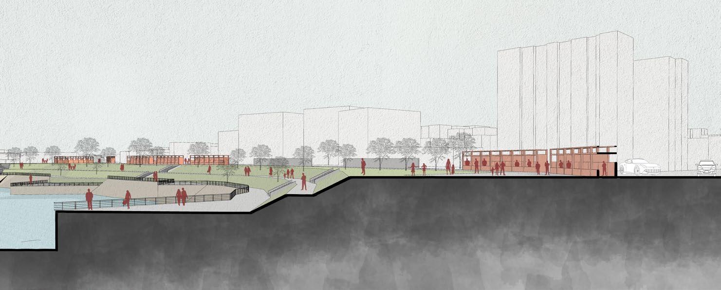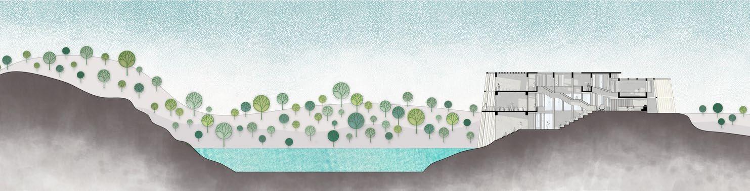 The project’s goal is to turn the Divisionhaus bunker in Regensburg into a museum while preserving its historical significance. Minimal modifications will be made, mainly to add a reception area, bathrooms, exhibition space, and a storage room. The objective is to provide visitors with an immersive journey through time, showcasing the authentic dormitories and sanitary facilities of the bunker through exhibitions and guided tours. The key focus is on revealing the bunker’s existence from the outside, with special attention to outdoor spaces. A winding path through vegetation gradually uncovers traces of the bunker- made from demolished broken brick walls, leading visitors to the museum’s entrance, designed like an existing emergency exit staircase. This museum aims to illuminate Regensburg’s military history and offer a unique educational experience for all visitors.