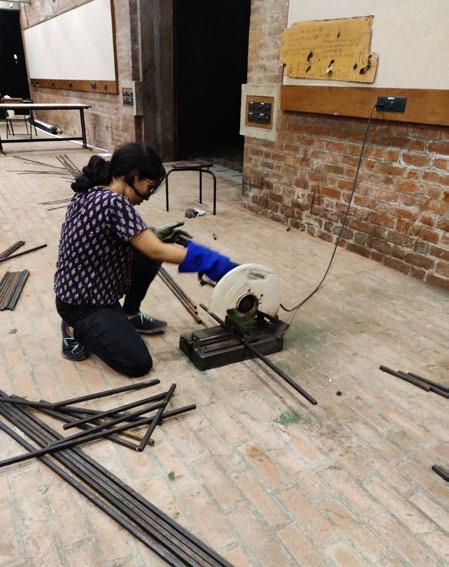 The course involved making everyday- products from construction waste. Materials such as MS steel, plywood, bamboo and PVC were collected from different construction sites in Ahmedabad to make the products. The behavioral qualities like compressive strength, durability etc of each material were studied and applied in making the product; to make it structurally stable. It was a great opportunity to learn and implement the understanding of machinery in the workshop.