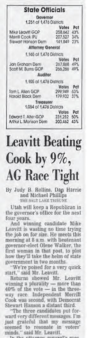 “ Ladies and gentlemen, the Governor-Elect, Michael O. Leavitt!“