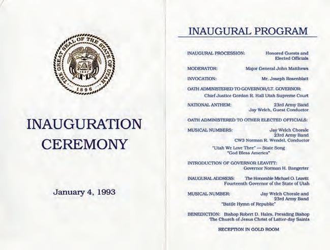 That building and I have a long history. Ever since I was a boy, after spending time with my father as he served in the legislature during the early 1960s, the State Capitol has held significance for me, as well as a special place in my heart. However, January 4, 1993, would link me to the Capitol building forever. It was Statehood Day, the ninety-seventh anniversary of Utah becoming America’s forty-fifth state, and inauguration day for me as Utah’s fourteenth governor.