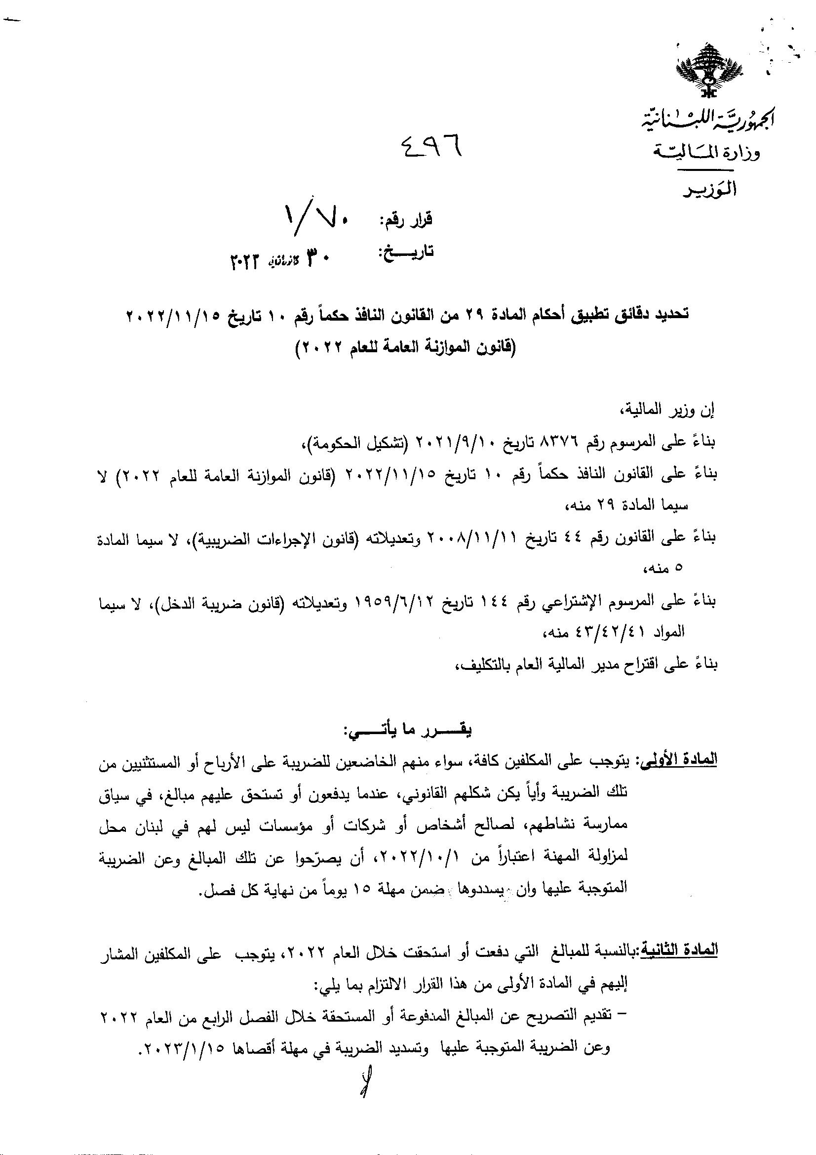 قرار للمالية بتحديد دقائق تطبيق أحكام المادة 29 من قانون قانون الموازنة العامة by Lebanese Forces - Issuu