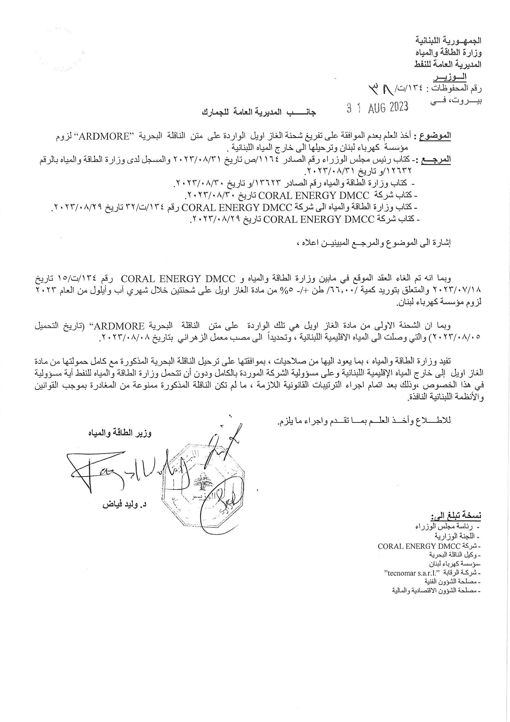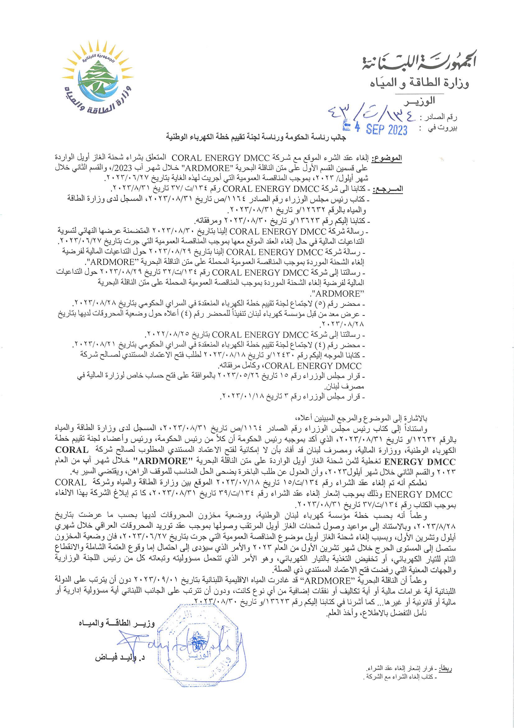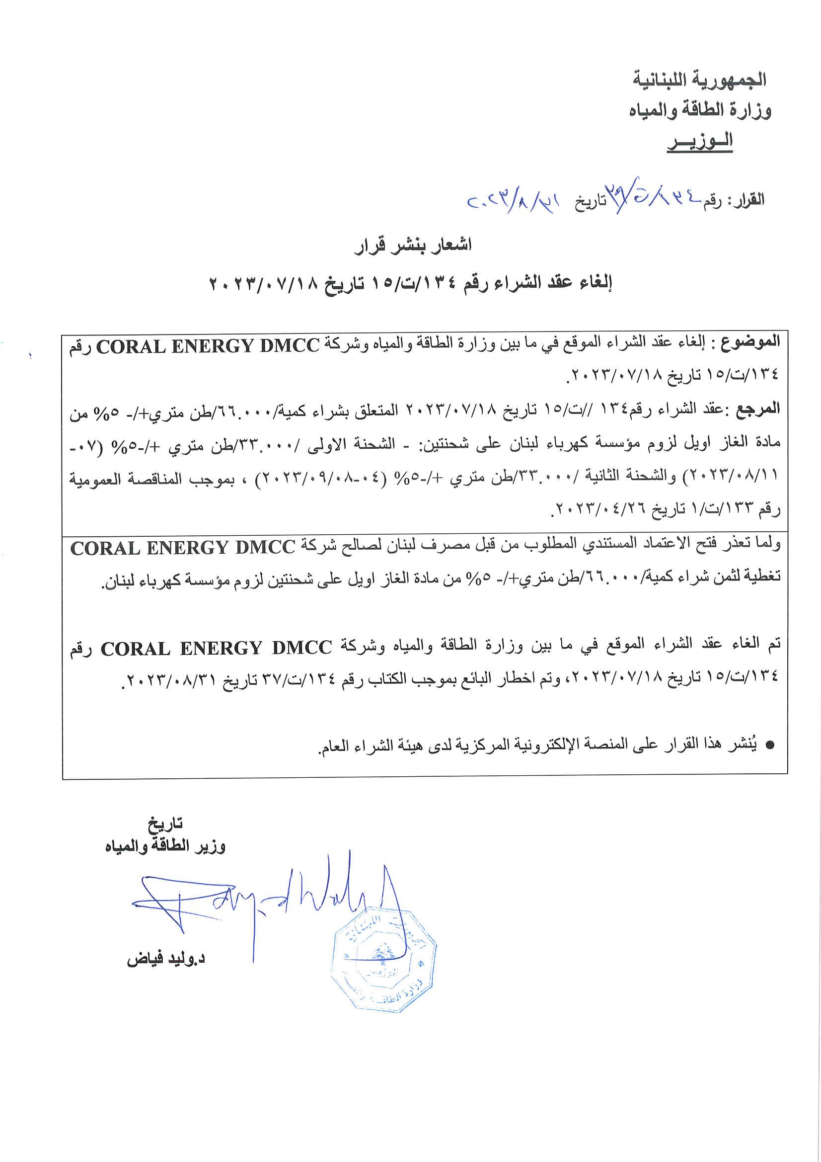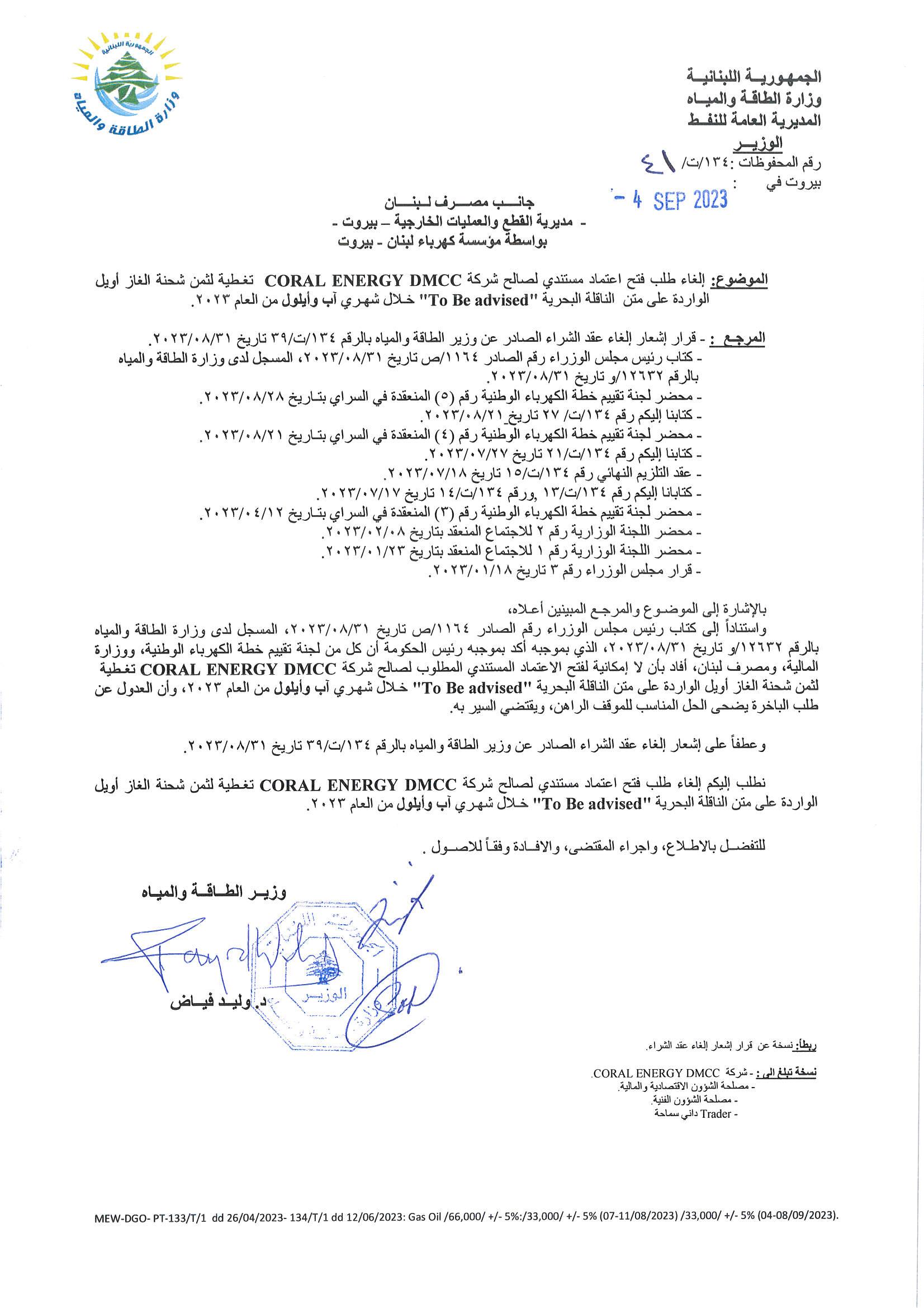 الغاء عقد الشراء المتعلق بشراء شحنة الغاز اويل