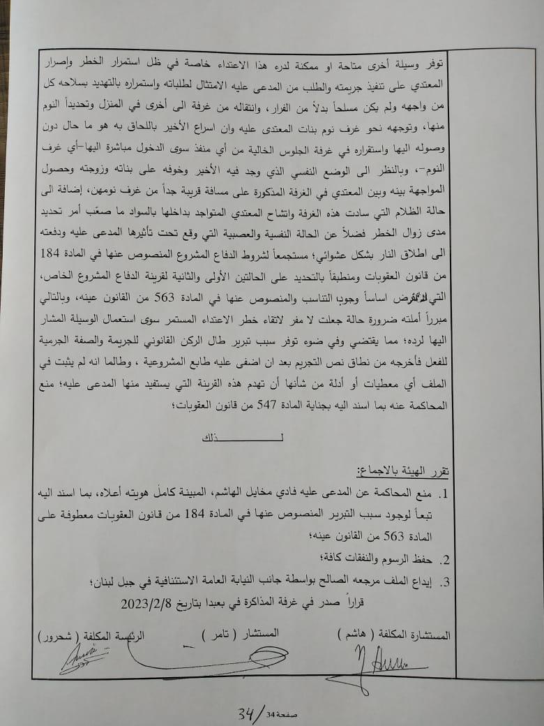 صدور القرار الاتهامي بقضية فادي الهاشم