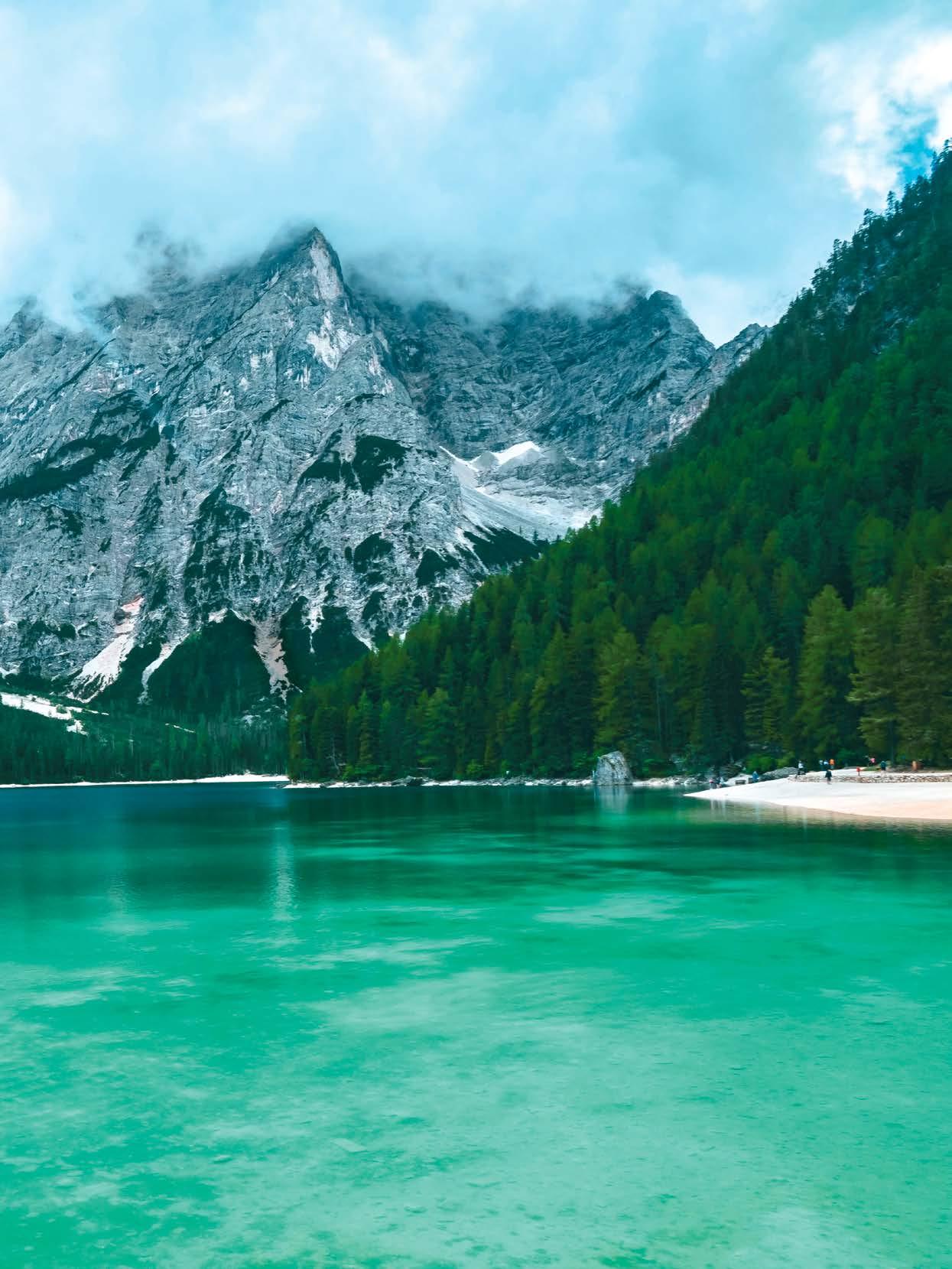 schönsten Strecken in den Dolomiten. Geradelt wird auf Schotter, immer leicht bergauf mit beeindruckender Aussicht auf den Toblacher See, die Drei Zinnen, den Dürrensee und die umliegenden Gipfel. Dann heißt es volle Power für Akku und Beinmuskeln: Die 4,5 Kilometer auf den Gemärkpass haben es sich in sich. Über Steine geht es knackig bergauf bis zur Grenze auf 1.530 Höhenmetern. Selbst trainierte Radler*innen kommen da ins Schnaufen. Aber das Ende ist absehbar.