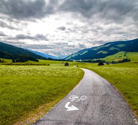 griff nehmen möchte, sollte mit seinem Rad bereits vertraut sein. Das gibt Sicherheit. „Schaffe ich das wirklich?“ Ein bisschen Respekt vor der körperlichen Herausforderung schadet nicht. In Kombination mit guter Vorbereitung und etwas Mut ergibt das die richtige Mischung fürs Radeln über weitere Strecken. Route und Länge sind immer entsprechend der eigenen Kondition zu wählen, speziell beim ersten Mal auf einem Fernradweg. Als Regel gilt: 15 Kilometer pro Stunde sind mit einem normalen Rad im flachen Gelände zu schaffen. Kommen steilere Passagen hinzu, ist ein E-Bike ganz praktisch. Ideal für einen sanften Einstieg sind der Donau-, Drau- oder Alpen-AdriaRadweg.