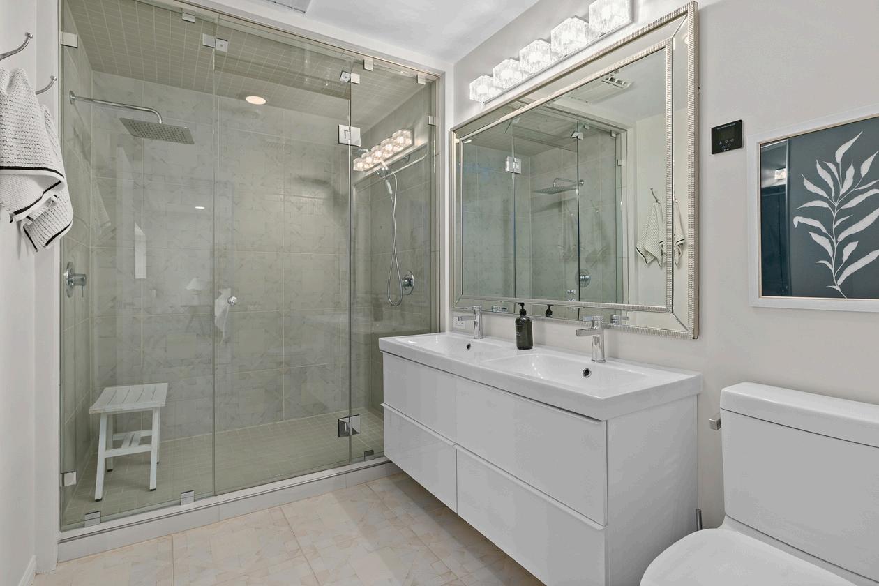 Designed for hosting, this home boasts several inviting spots, including covered decks and lounge areas around the natural swimming pool. The extraordinary 9.5-foot-deep pool and the backyard, equipped with an outdoor shower and plenty of space, make this property one-of-akind.