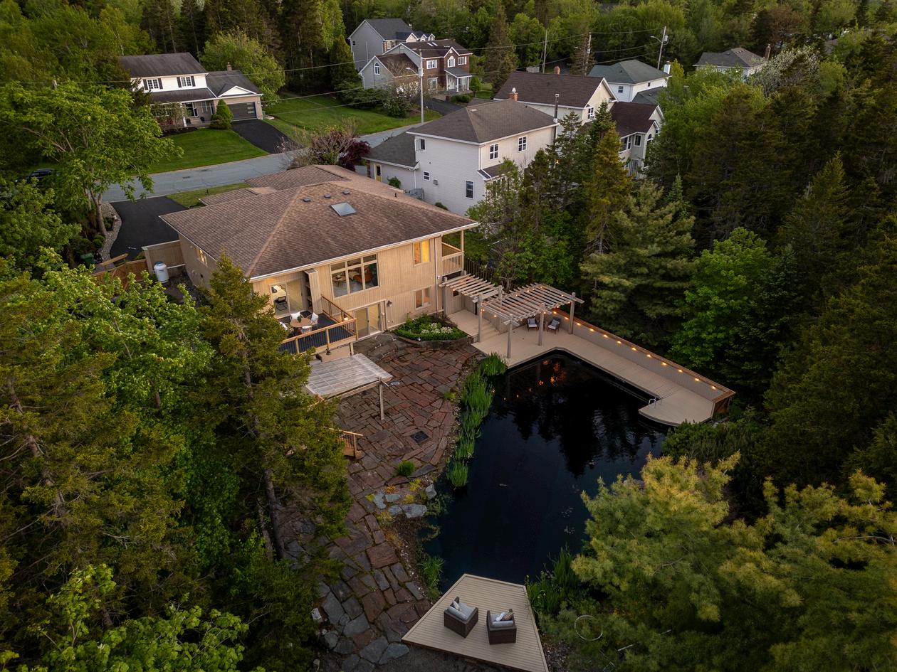 Discover your own urban sanctuary right in the city. This magnificent residence, crafted by renowned Canadian luxury architect Denis Apchin, represents a modern West Coast-inspired design. With two sunlit levels surrounded by a private, mature forest, this home offers multiple entertainment areas and a breathtaking natural swimming pool. Nestled on a cul-desac of executive homes in one of Halifax's most coveted neighborhoods, this property features 6 bedrooms, 4 bathrooms, and 3,568 sq ft of luxurious living space, making it an entertainer's paradise.