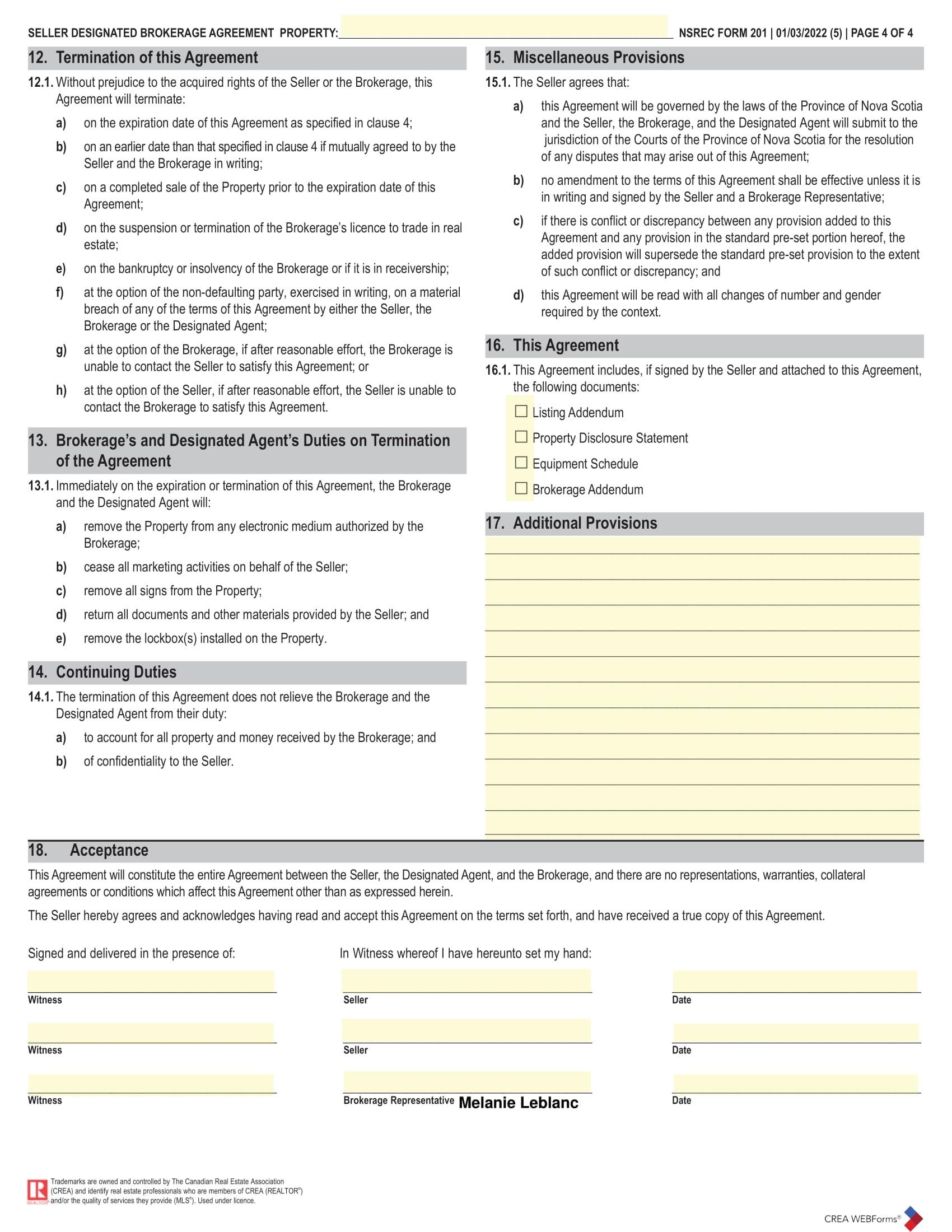 This is the form that is used to explain the different types of agency you can have with a REALTOR® and their brokerage and outlines the responsibilities of the seller and agent