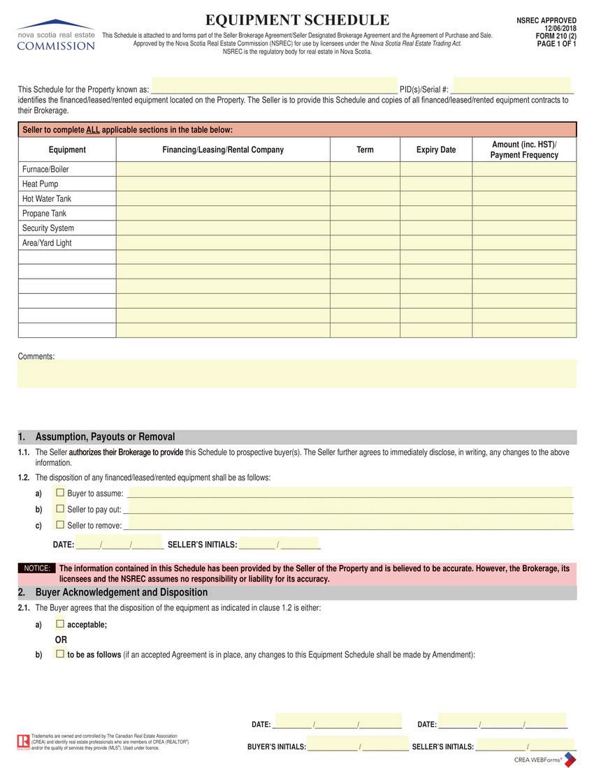 This is the form sellers fill out to identify if there are any financed/leased/rented equipment at the property and allows the buyer(s) to accept, reject the terms or propose new terms.