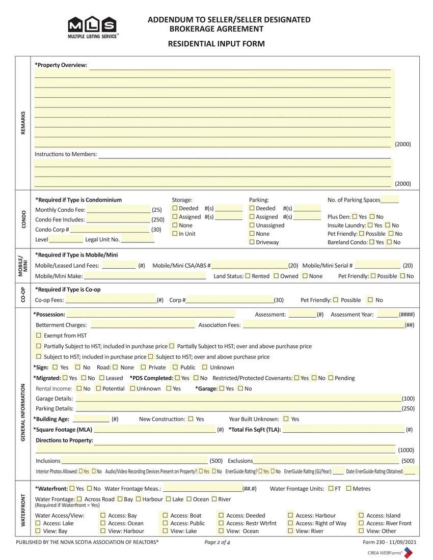 This form is used to add all the information about your property on the MLS® system.