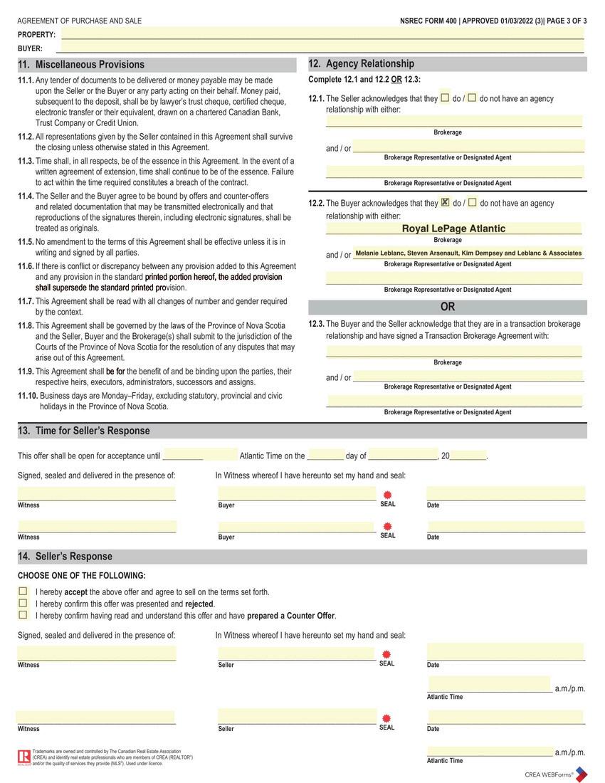 A copy of the purchase and sale agreement will be sent to their mortgage company for approval.