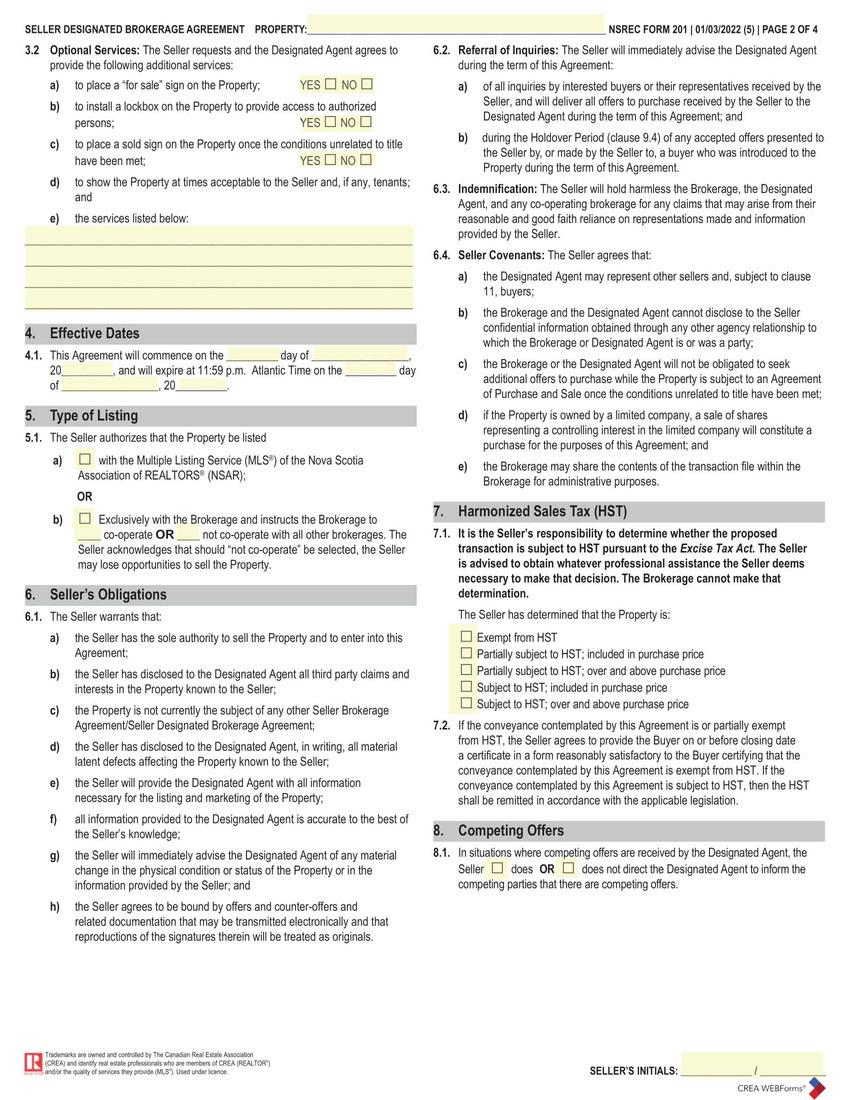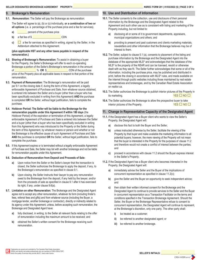 This is the form used to explain the different types of agency you can have with a REALTOR® and their brokerage and outlines the responsibilities of the seller and agent.