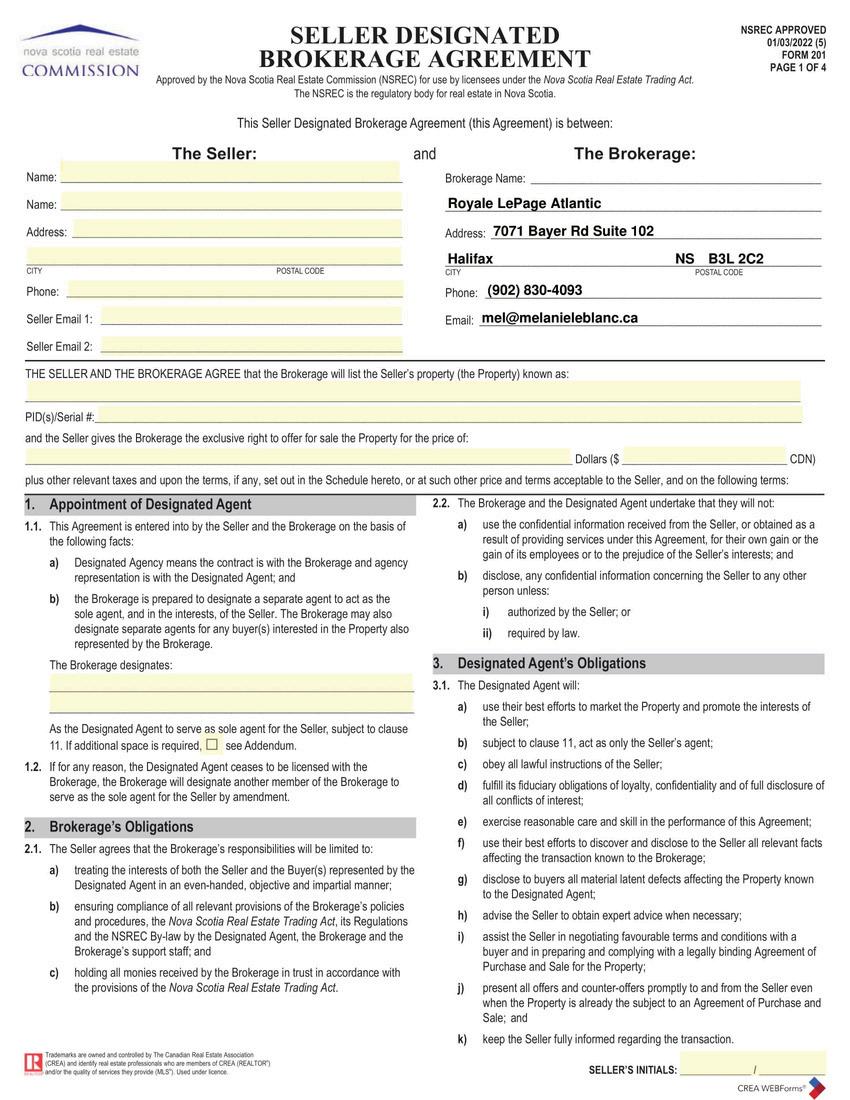 Seller Designated Brokerage Agreement