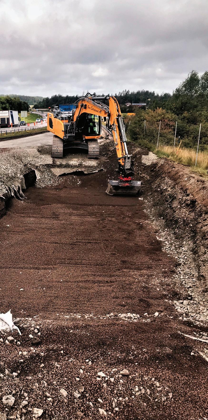 Vor 20 Jahren wurde die Autobahn E6 vor den Toren von Uddevalla aus gebaut. Für Abschnitte des Auto bahnausbaus verwendete der Ba uunternehmer PEAB Leca LWA als leichtgewichtige Schüttung. Im Jahr 2021 führte Svevia, Spezialist für Straßenbau und Infrastruktur, einige Instandhaltungsarbeiten durch. Die ursprünglich eingebrachte Aufschüt tung aus Leca LWA musste aufgr und der veränderten Anforderungen vor Ort ausgegraben und entfernt werden.