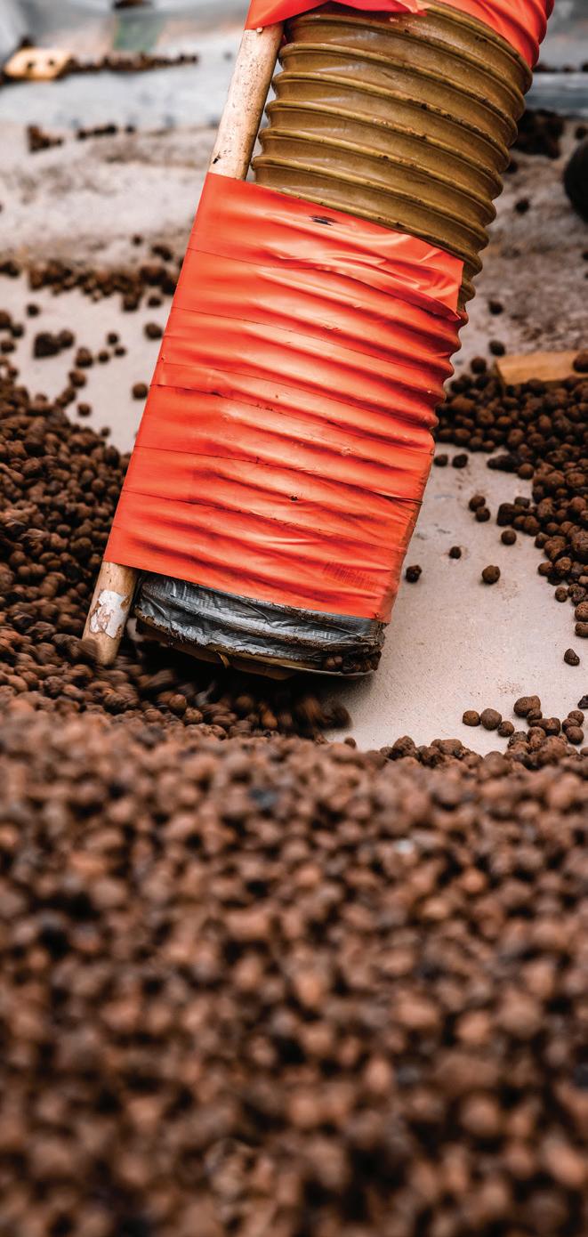 „Wir haben uns zum einen für Leca LWA entschieden, weil es so einfach zu hand haben ist. Zum anderen wird das Mate rial vor Ort hergestellt. Die Produktions stätte befindet sich hier in Rælingen. Dies ermöglichte uns eine gewisse Flex ibilität, da wir die Arbeiten um ein paar Tage verschieben oder beschleunigen konnten, wobei eine schnelle Koordina