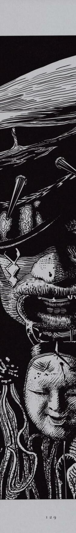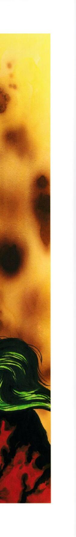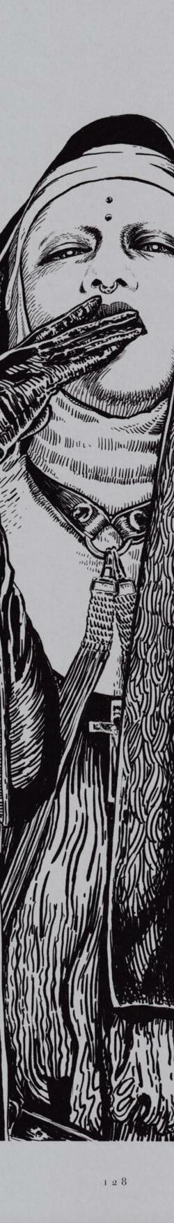 No solo hermosos colores hay en este artbook sino también trazos finos a blanco y negro.