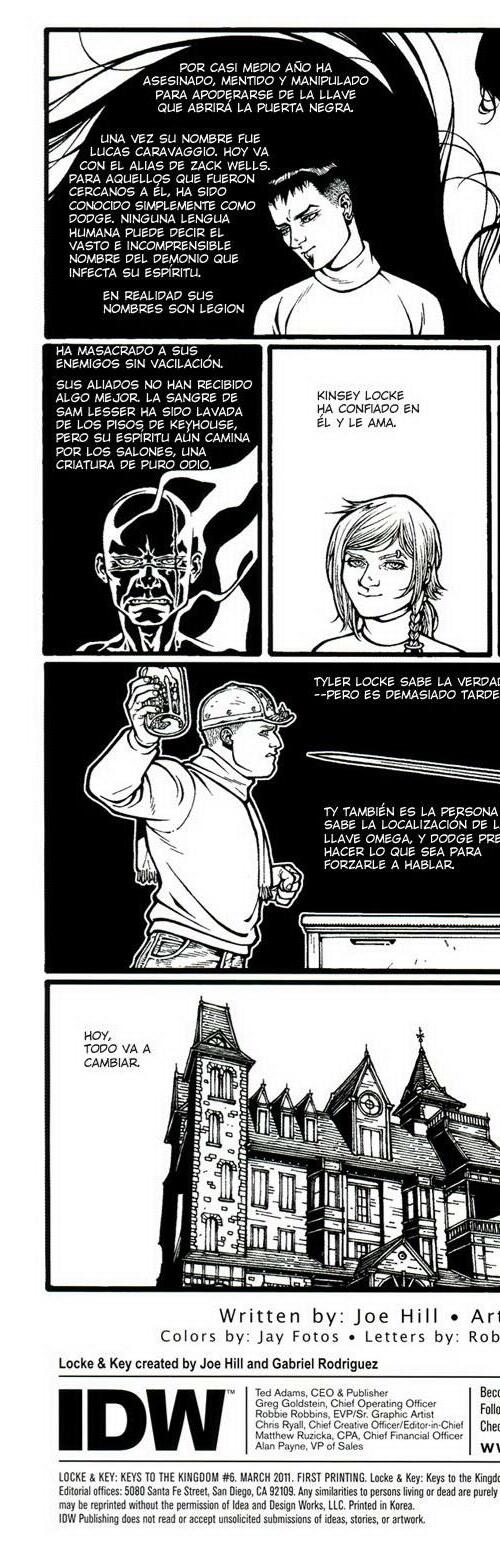 Los chicos Locke crecieron acostumbrados a la tragedia, pero quizá no están preparados para el peligro que acecha cada uno de sus movimientos. Lucas Caravaggio, alias Zack Wells, continúa su despiadada búsqueda de la llave que abre la puerta negra. Nuevas llaves y viejos fantasmas se unen a la historia a medida que se pierde la inocencia y se forja la determinación.