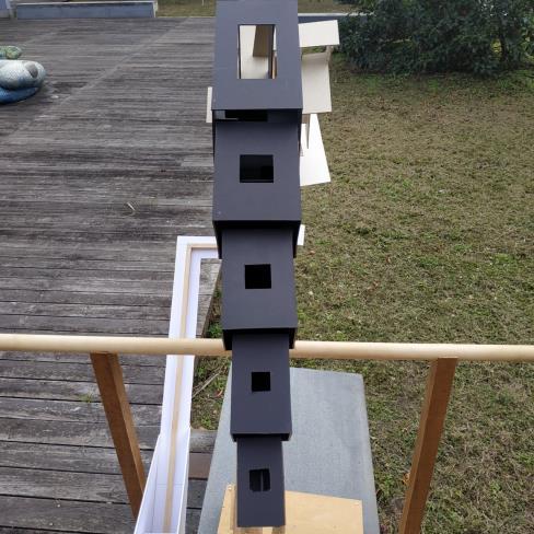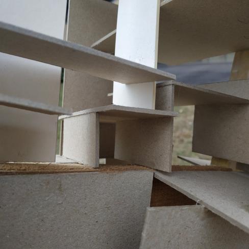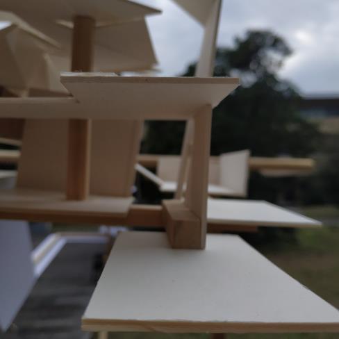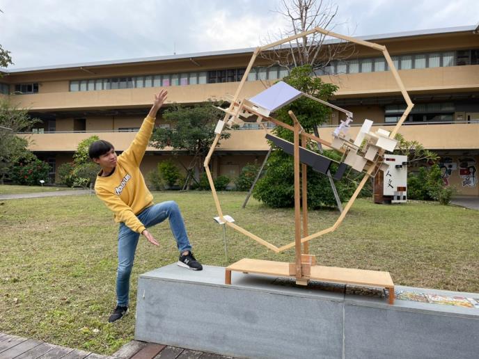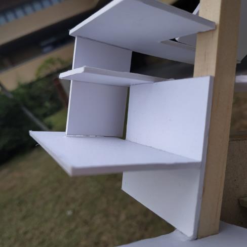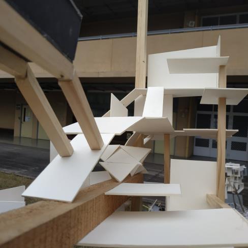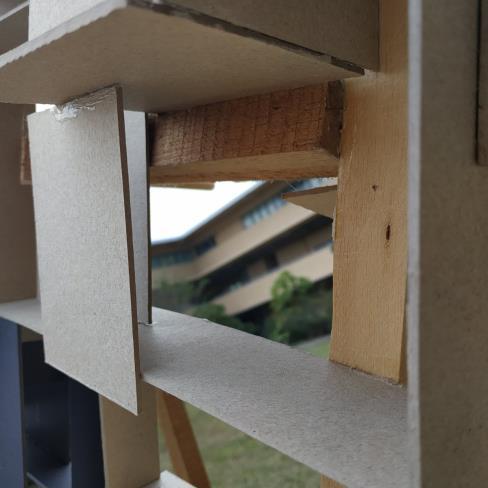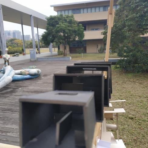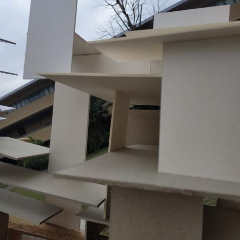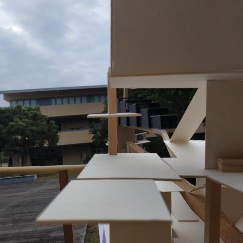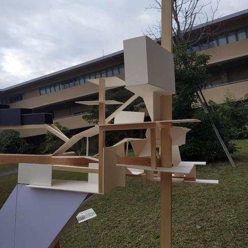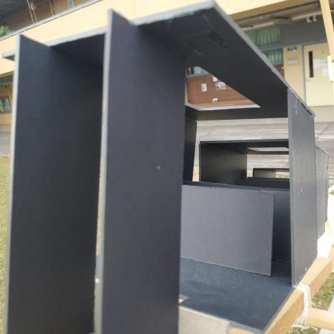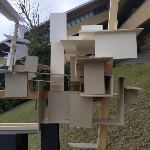 製作,也許除了訓練我們呈現空間的能力,也促使我們不斷的 去思考,謝謝老師,這半學期的指導,我自己在回顧第一次做 出來的模型,感受到的是,我真的進步了,從完全沒有空間的 雕塑品,到現在稍微有點樣子的空間模型,這段過程雖然辛苦 ,但也值得了